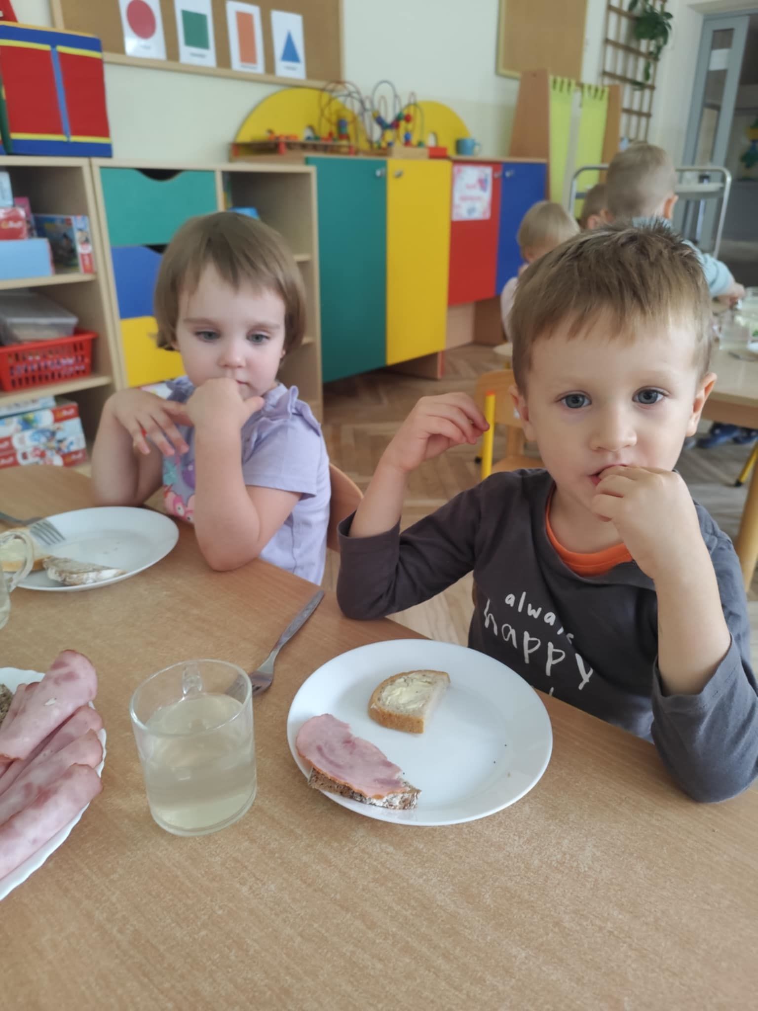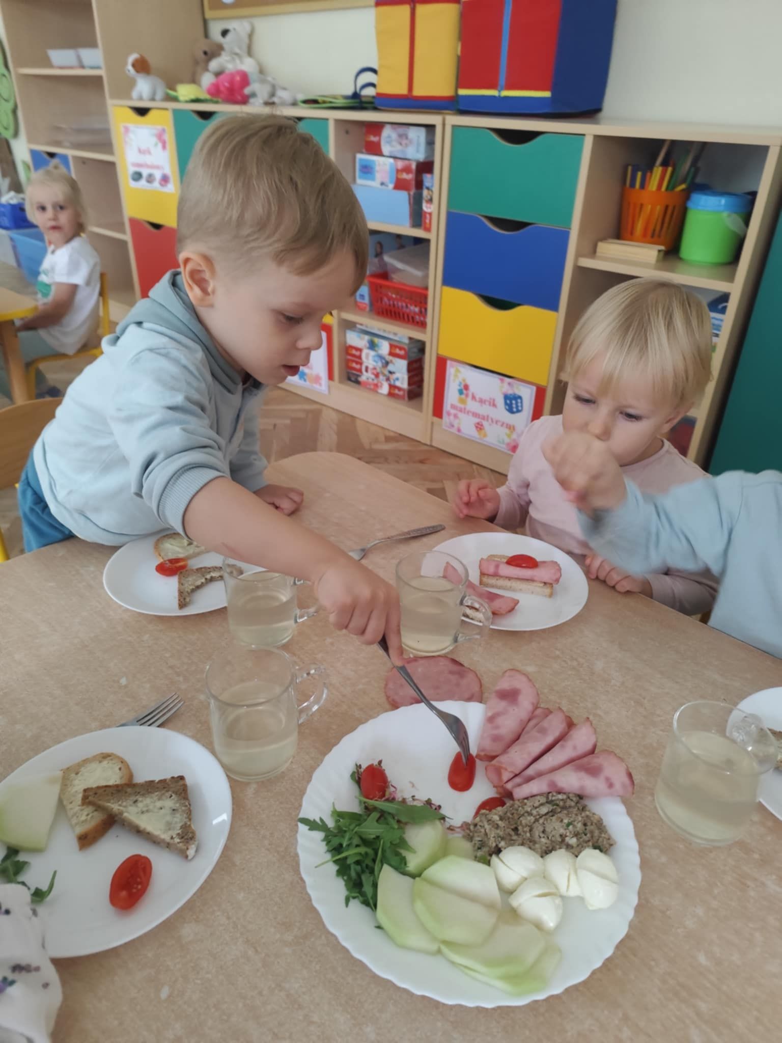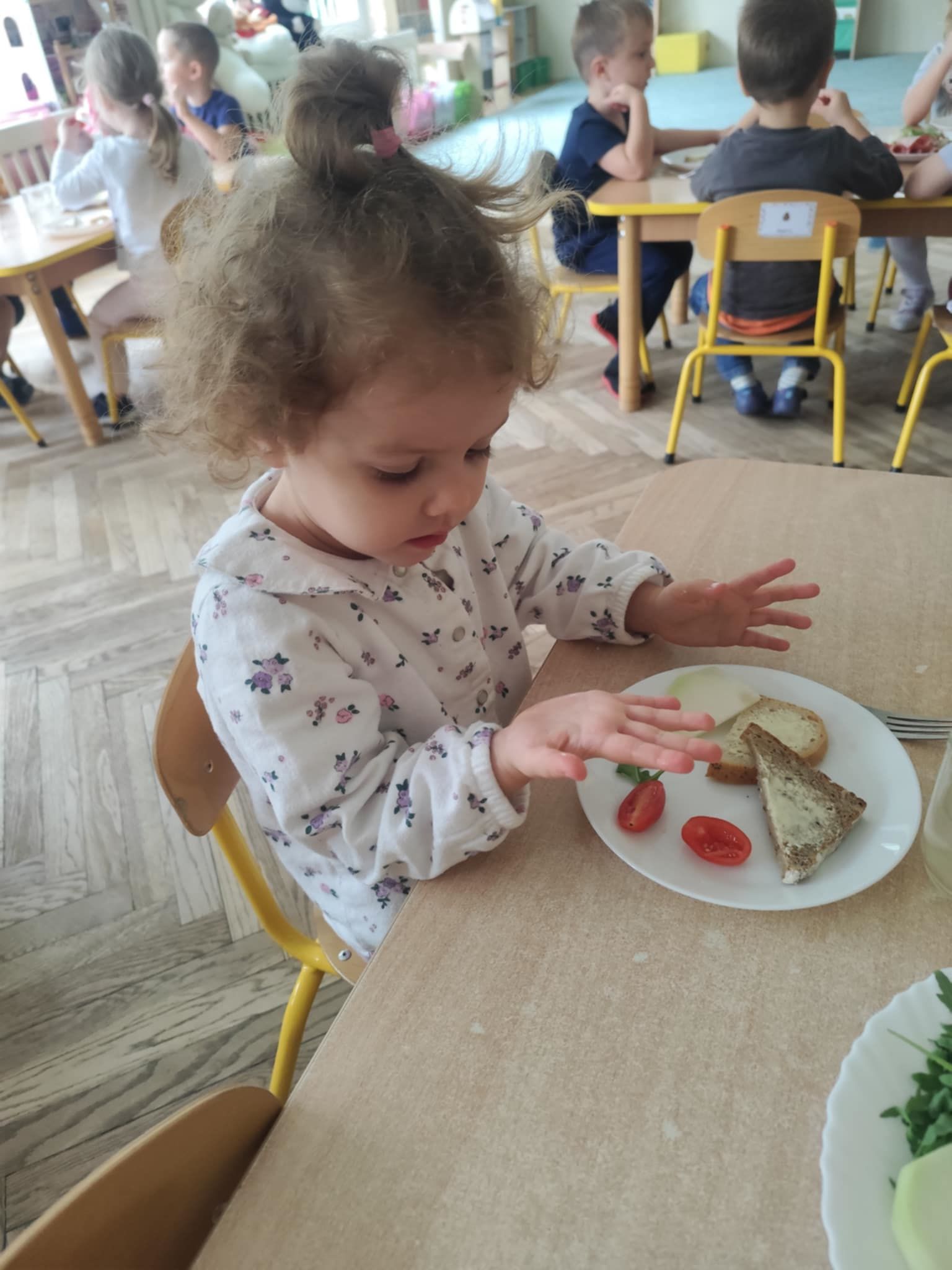 W samodzielnie komponowanym posiłku jest więcej zalet niż się wydaje. Dzięki temu, że Kropelki samodzielnie komponowały własne śniadanie zdobyły umiejętności praktyczne, jak zachowanie zasad higieny i bezpieczeństwa przy przygotowywaniu posiłków, nadziewały produkty spożywcze na widelczyk, wzmacniały poczucie sprawczości i pewności siebie dzięki samodzielności, uczyły się współpracy i dzielenia się z dziećmi, z którymi siedzą przy stoliczku. Dodatkowo stymulowały zmysły podczas gdy poznawały różne smaki, zapachy, faktury i kolory produktów: mozzarelli, rukoli, pasty z soczewicy, pomidorów, wędliny i kiełek. Nowe umiejętności czekają dzieci na każdym kroku, a nauka może okazać się... całkiem smaczna!