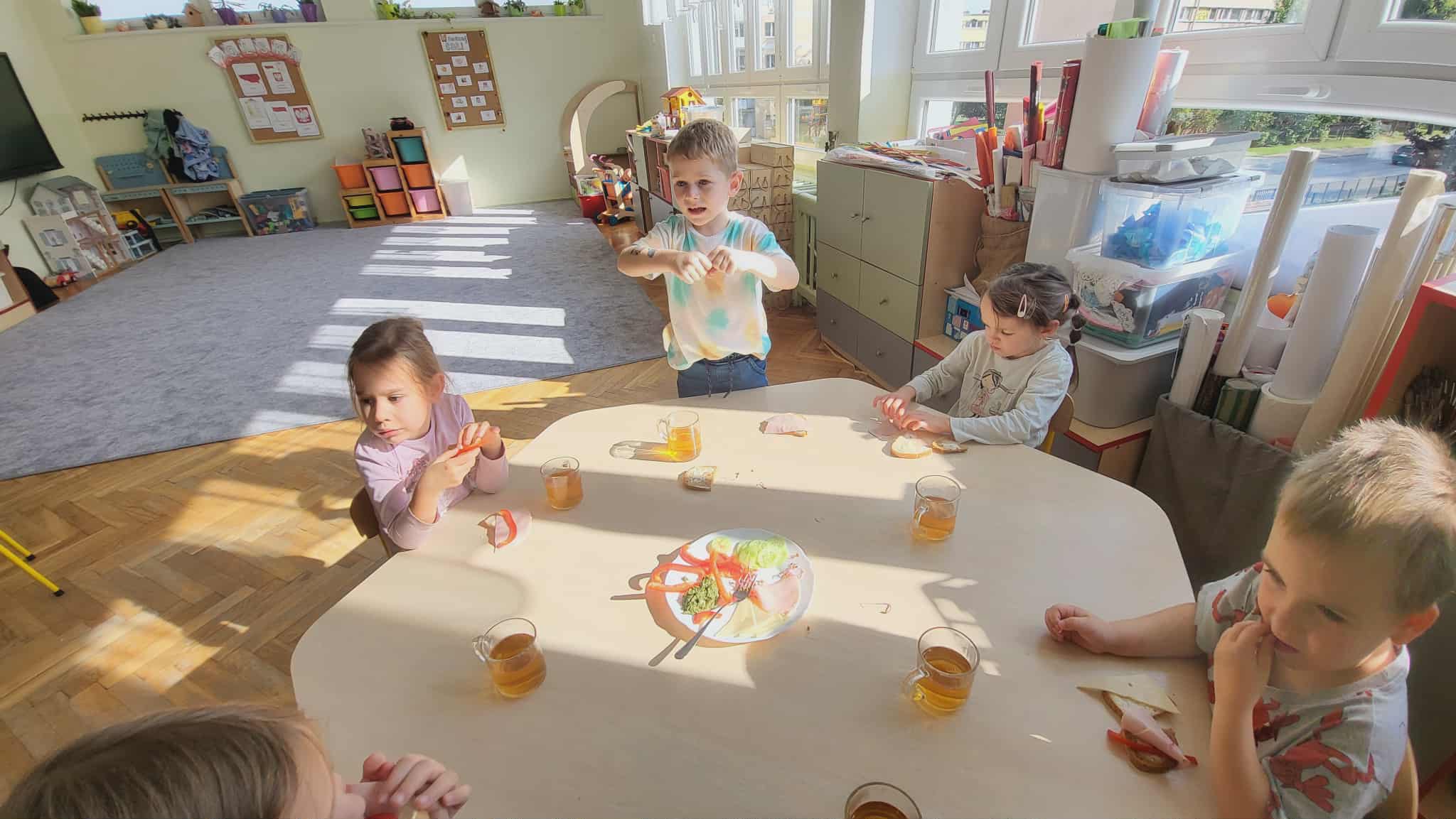 Przedszkolaki samodzielnie wykonują kanapki; mają do wyboru: pieczywo, warzywa, sery, wędliny... Mogą one same zdecydować o tym, co chcą zjeść i co najważniejsze same mogą sobie ułożyć na kanapce wybrane składniki. Dzieci są zachwycone sposobem podawania posiłku. Kanapki sporządzone według własnego pomysłu bardzo im smakują. Nawet „niejadki” zjadają swoją porcję z wielkim apetytem.