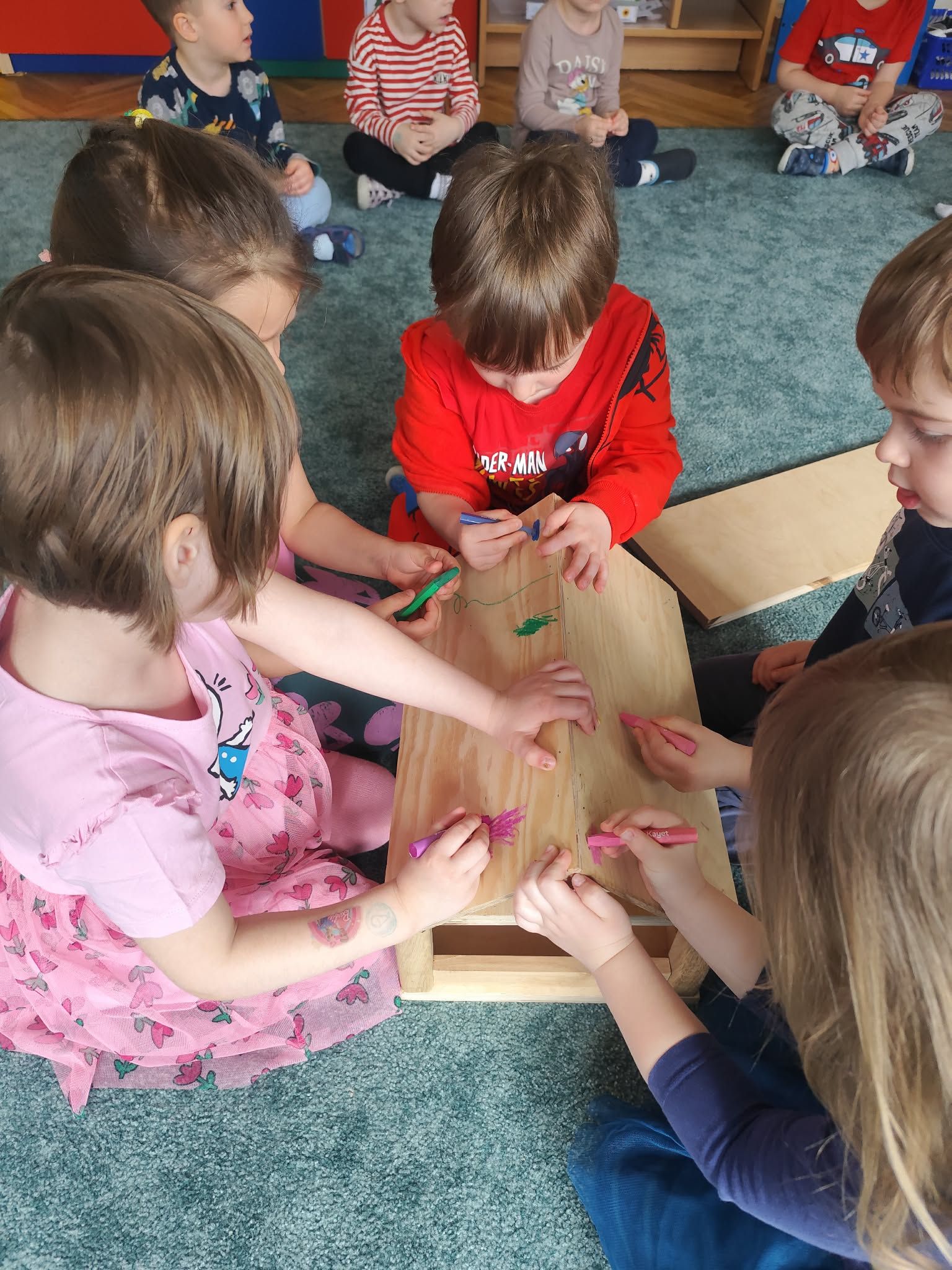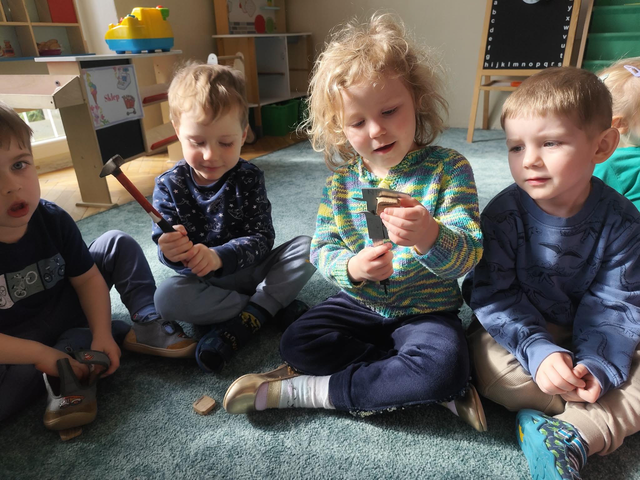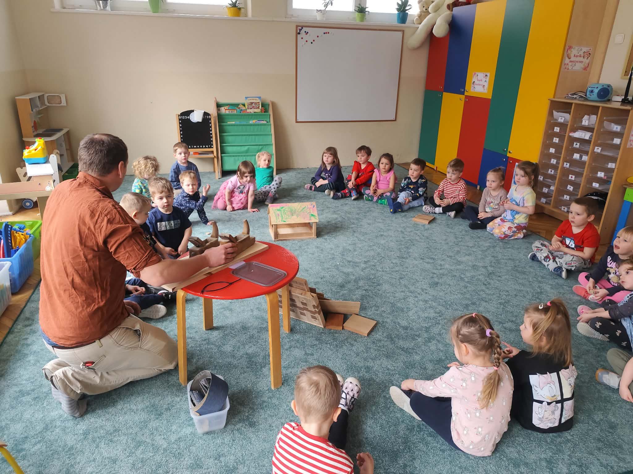 W grupie I odbył się Tydzień Spotkań z Zawodami. W części pierwszej naszych spotkań Kropelki gościły u siebie: choreografkę i instruktorkę tańca, stolarza oraz tłumaczkę przysięgłą. Podczas tych spotkań dzieci poznały zależności między choreografem, instruktorem, a tancerzem oraz poznały takie figury taneczne jak relevé i plié. Spotkanie ze stolarzem pozwoliło dzieciom poznać różne narzędzia prosto z warsztatu, rodzaje drewna, np. dębowe czy zebrowe. Stolarz zapoznał także dzieci z zasadami bezpieczeństwa pracy w warsztacie. W prezencie grupa otrzymała piękny karmnik, który samodzielnie mogła ozdobić. Spotkanie z tłumaczką pozwoliło dzieciom zrozumieć, czym jest tłumaczenie. Wykonały samodzielne prace, które tłumaczyły, kolorowały i zapakowały w koperty. Każdy z listów został opieczętowany, zaadresowany i zabrany przez Panią Izę na pocztę :)