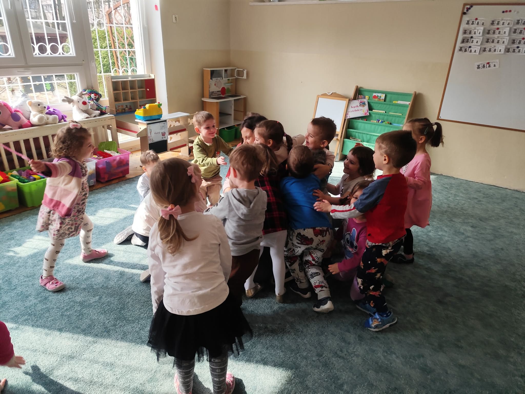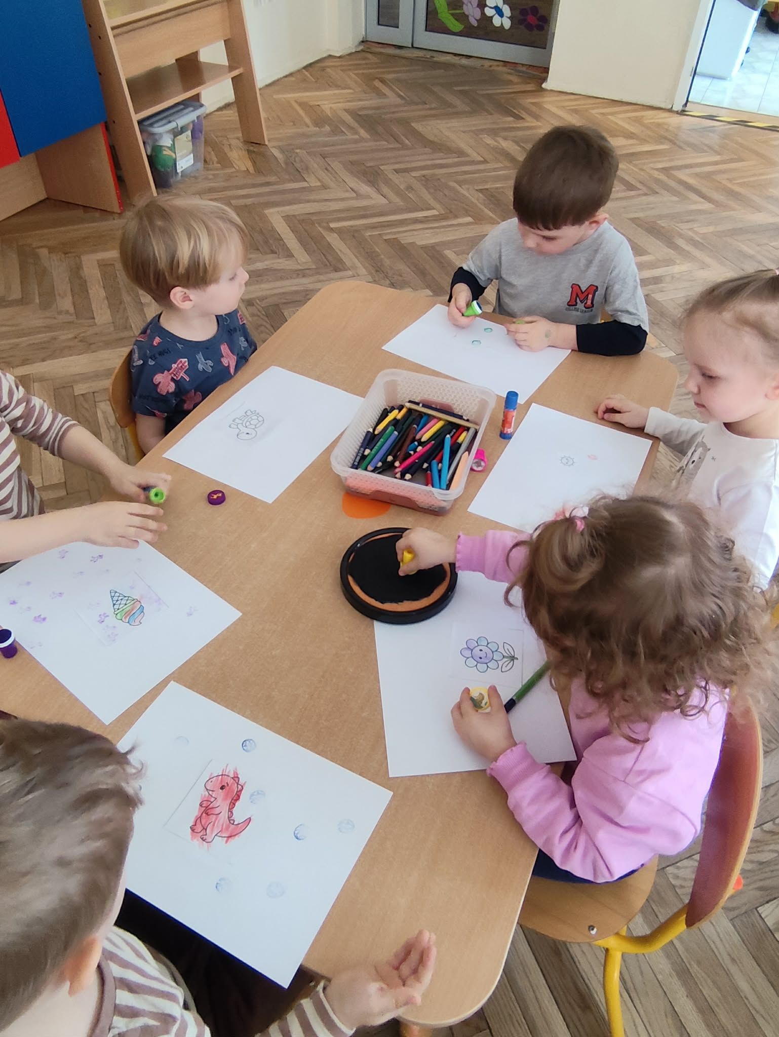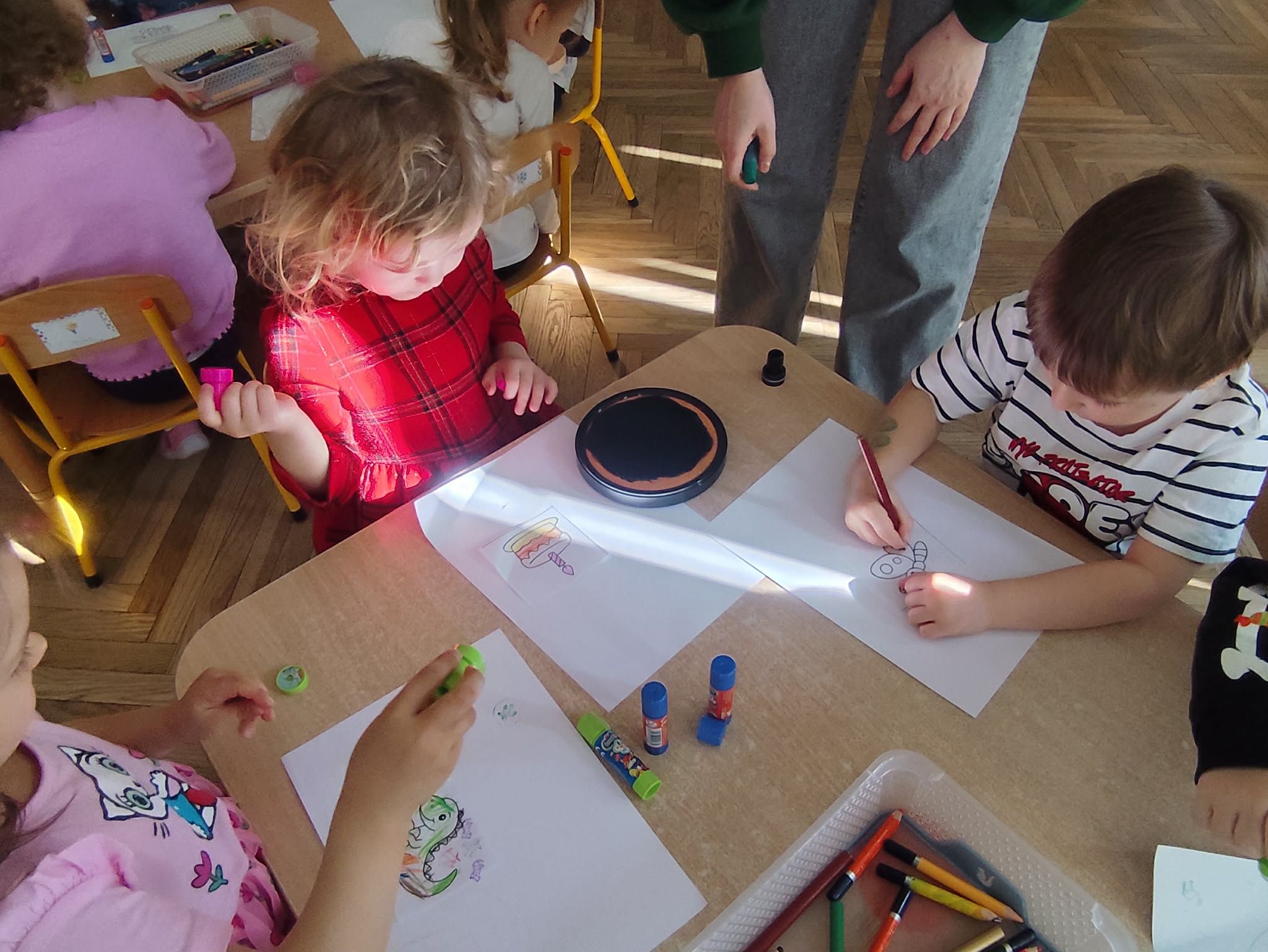 W grupie I odbył się Tydzień Spotkań z Zawodami. W części pierwszej naszych spotkań Kropelki gościły u siebie: choreografkę i instruktorkę tańca, stolarza oraz tłumaczkę przysięgłą. Podczas tych spotkań dzieci poznały zależności między choreografem, instruktorem, a tancerzem oraz poznały takie figury taneczne jak relevé i plié. Spotkanie ze stolarzem pozwoliło dzieciom poznać różne narzędzia prosto z warsztatu, rodzaje drewna, np. dębowe czy zebrowe. Stolarz zapoznał także dzieci z zasadami bezpieczeństwa pracy w warsztacie. W prezencie grupa otrzymała piękny karmnik, który samodzielnie mogła ozdobić. Spotkanie z tłumaczką pozwoliło dzieciom zrozumieć, czym jest tłumaczenie. Wykonały samodzielne prace, które tłumaczyły, kolorowały i zapakowały w koperty. Każdy z listów został opieczętowany, zaadresowany i zabrany przez Panią Izę na pocztę :)