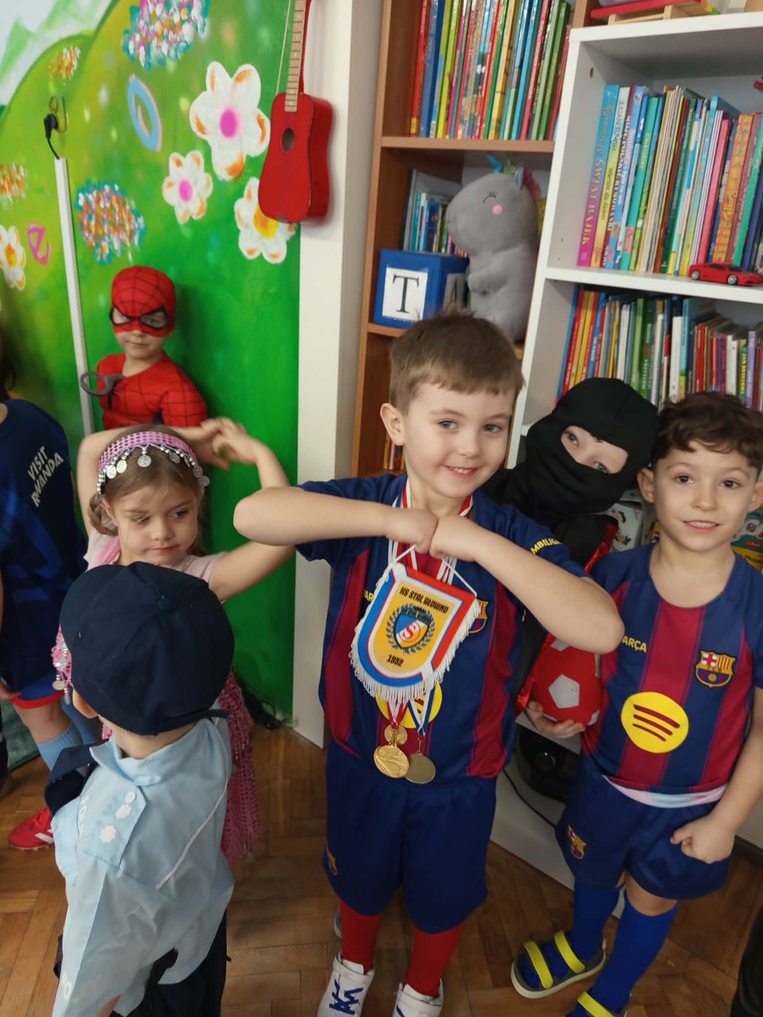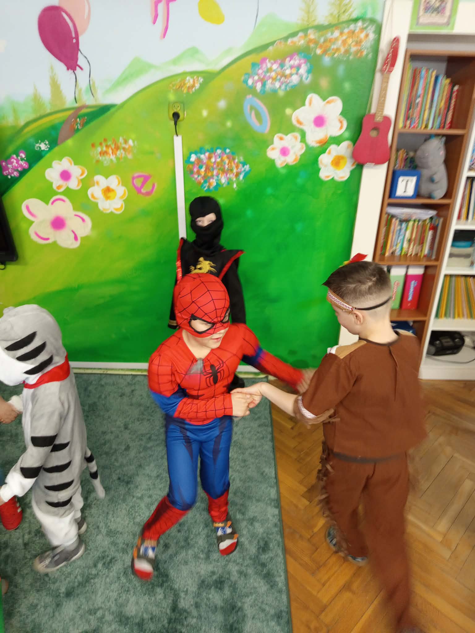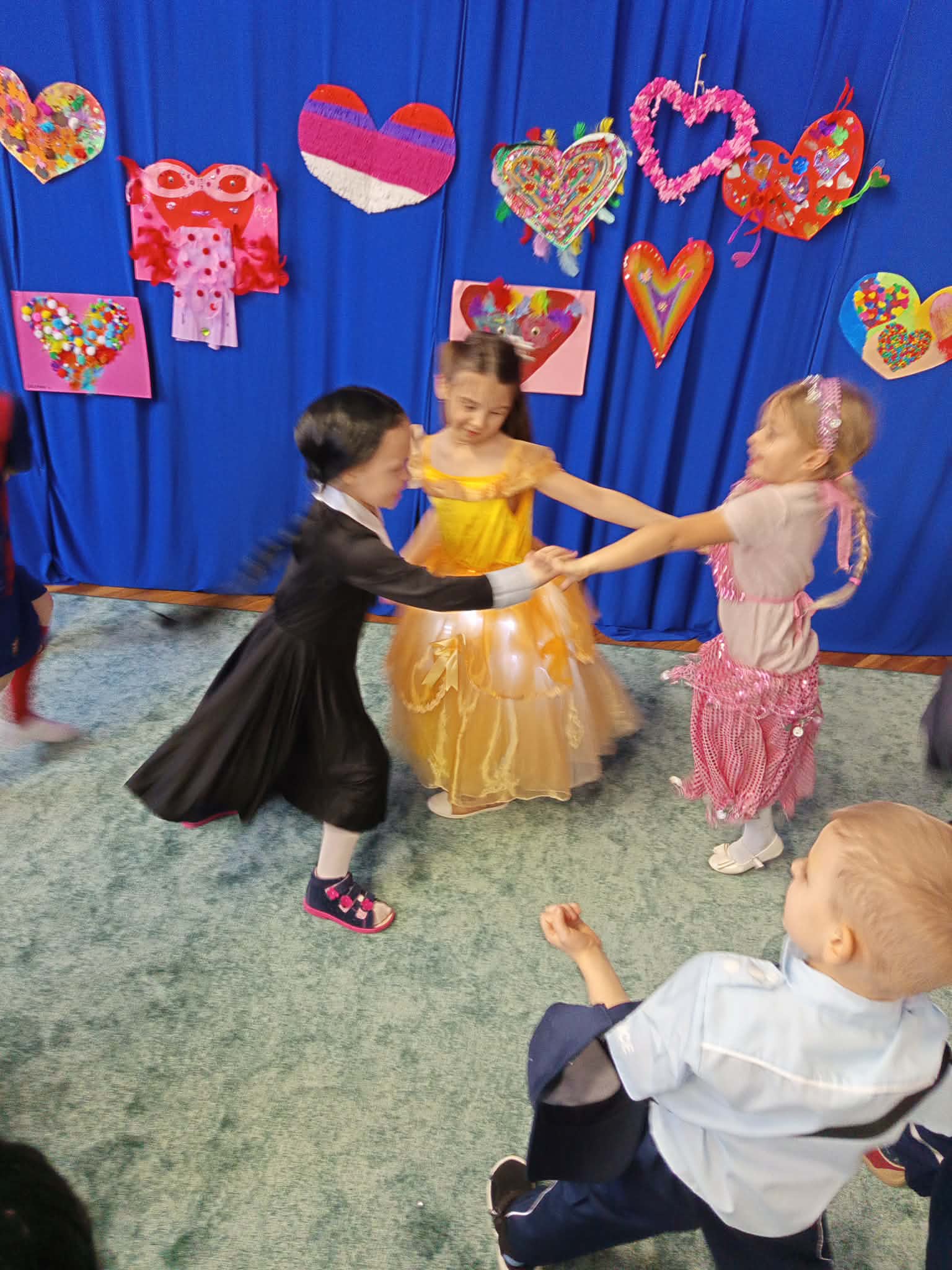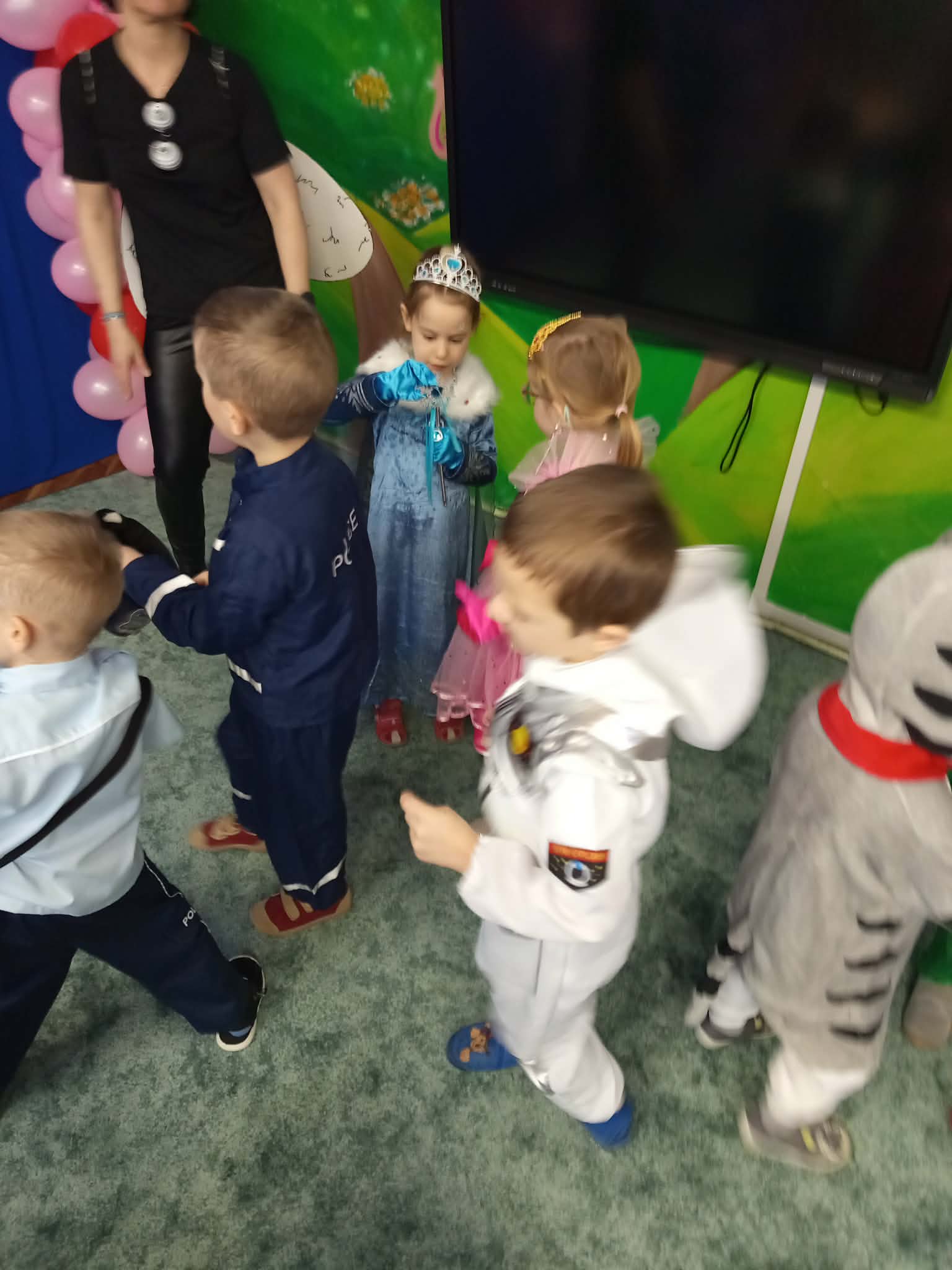WSZYSCY BAWIĄ SIĘ WSPANIALE – JAK CO ROKU W KARNAWALE, bo karnawał to miła tradycja przepełniona muzyką i zabawą, gdzie ważnym elementem tego okresu są bale karnawałowe. Bal karnawałowy dla przedszkolaków to dzień niezwykły, często wyczekiwany przez wiele tygodni. Tego dnia już od rana w przedszkolu pojawiały się kolorowe postacie. Dzieci przebrane były za bohaterów znanych bajek . Wystrój sali balowej nawiązywał do Walentynek i wprowadził radosny nastrój oraz zachęcał wszystkich do wesołej zabawy. Dzieci świetnie się bawiły uczestnicząc wspólnie w zabawach , konkursach i tańcząc przy swoich ulubionych utworach. Wspólna zabawa przyniosła wiele radości naszym wychowankom, a to było głównym celem tego balu. Dziękujemy Dzieciom i Rodzicom za zaangażowanie w przygotowanie pięknych balowych strojów.