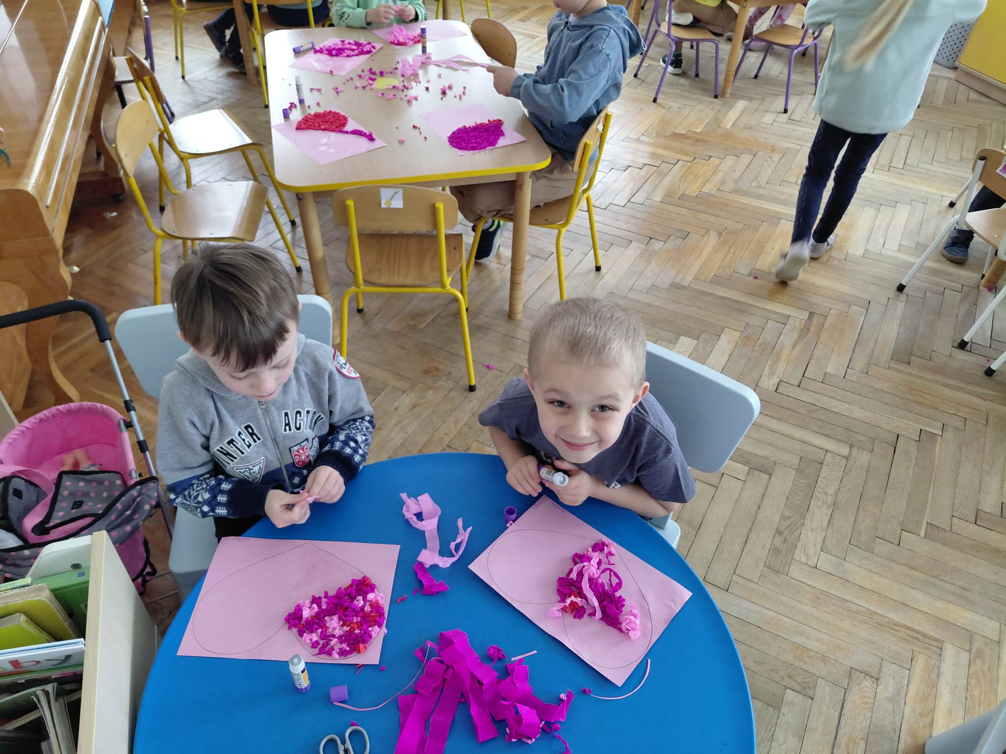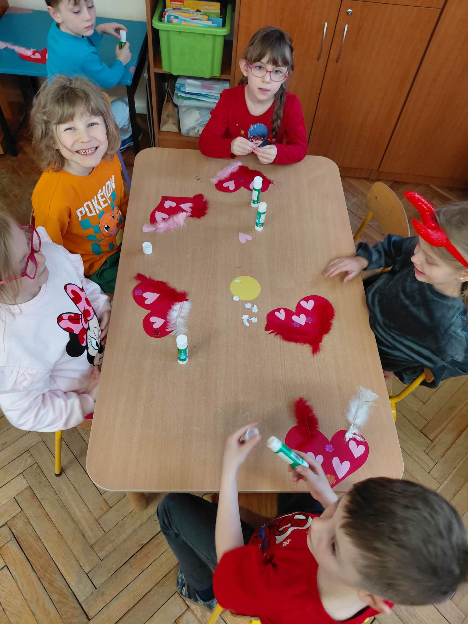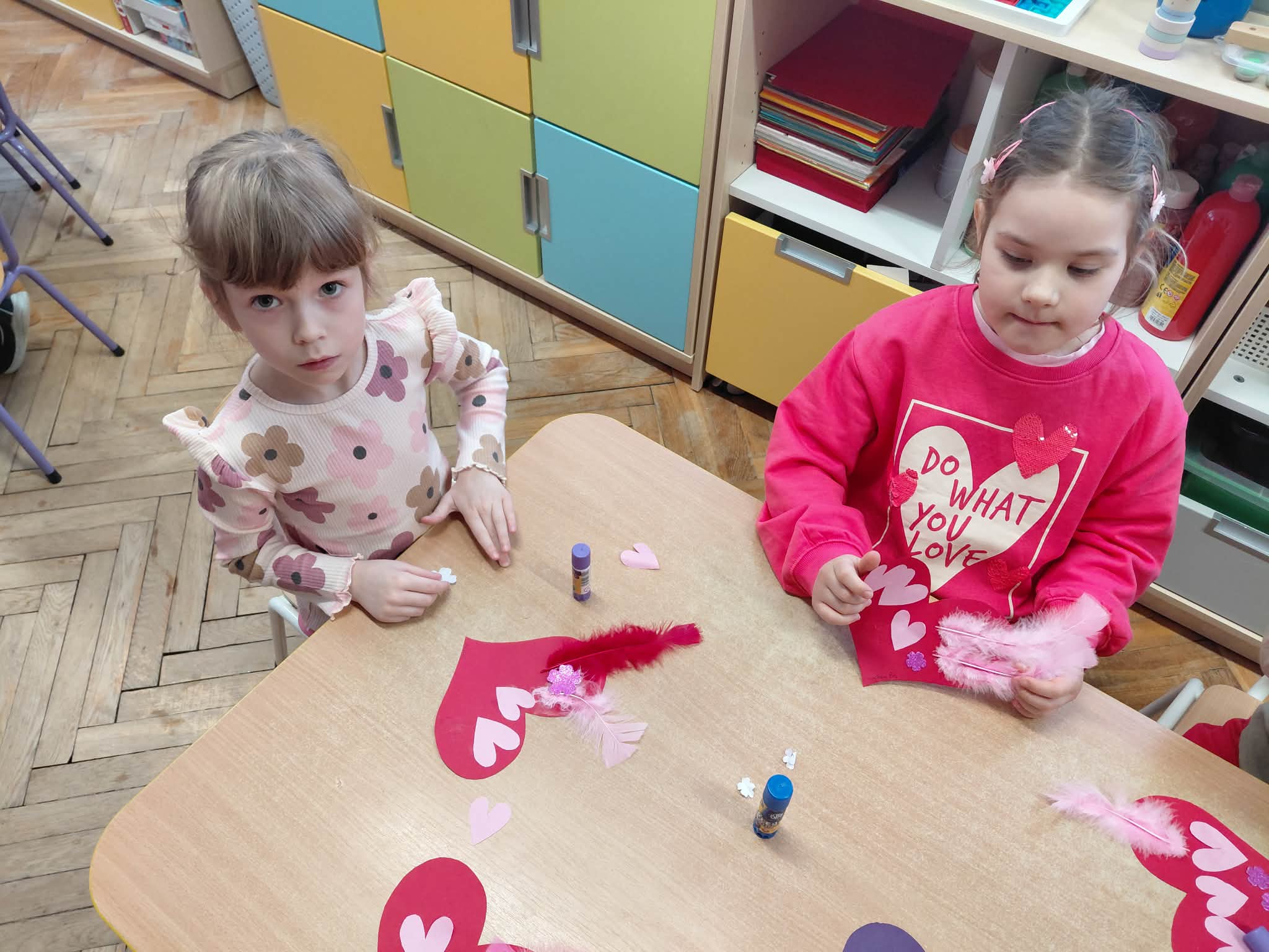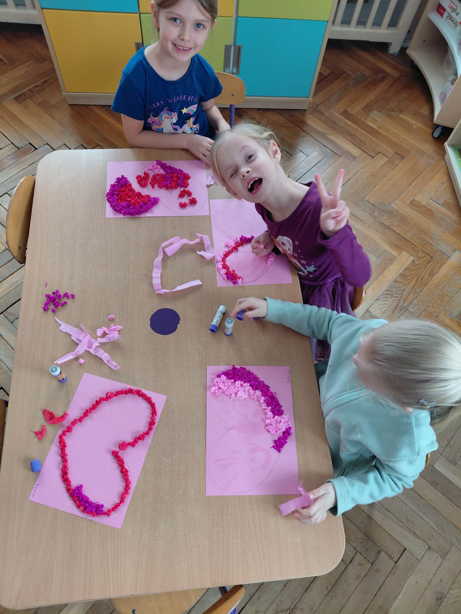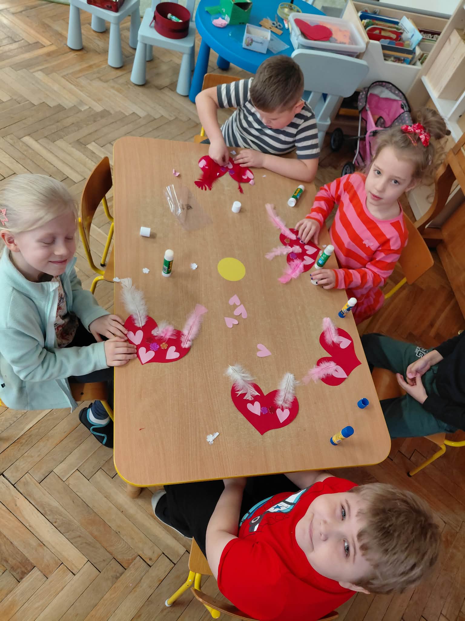 W lutym świętowaliśmy w naszej grupie WALENTYNKI. W piątek rozdaliśmy sobie wszyscy wykonane przez dzieci walentynki z naszej poczty walentynkowej. Wykonaliśmy również walentynkową pracę plastyczną, składaliśmy sobie życzenia i rozmawialiśmy o tym święcie. Chętne dzieci przyszły ubrane na czerwono.