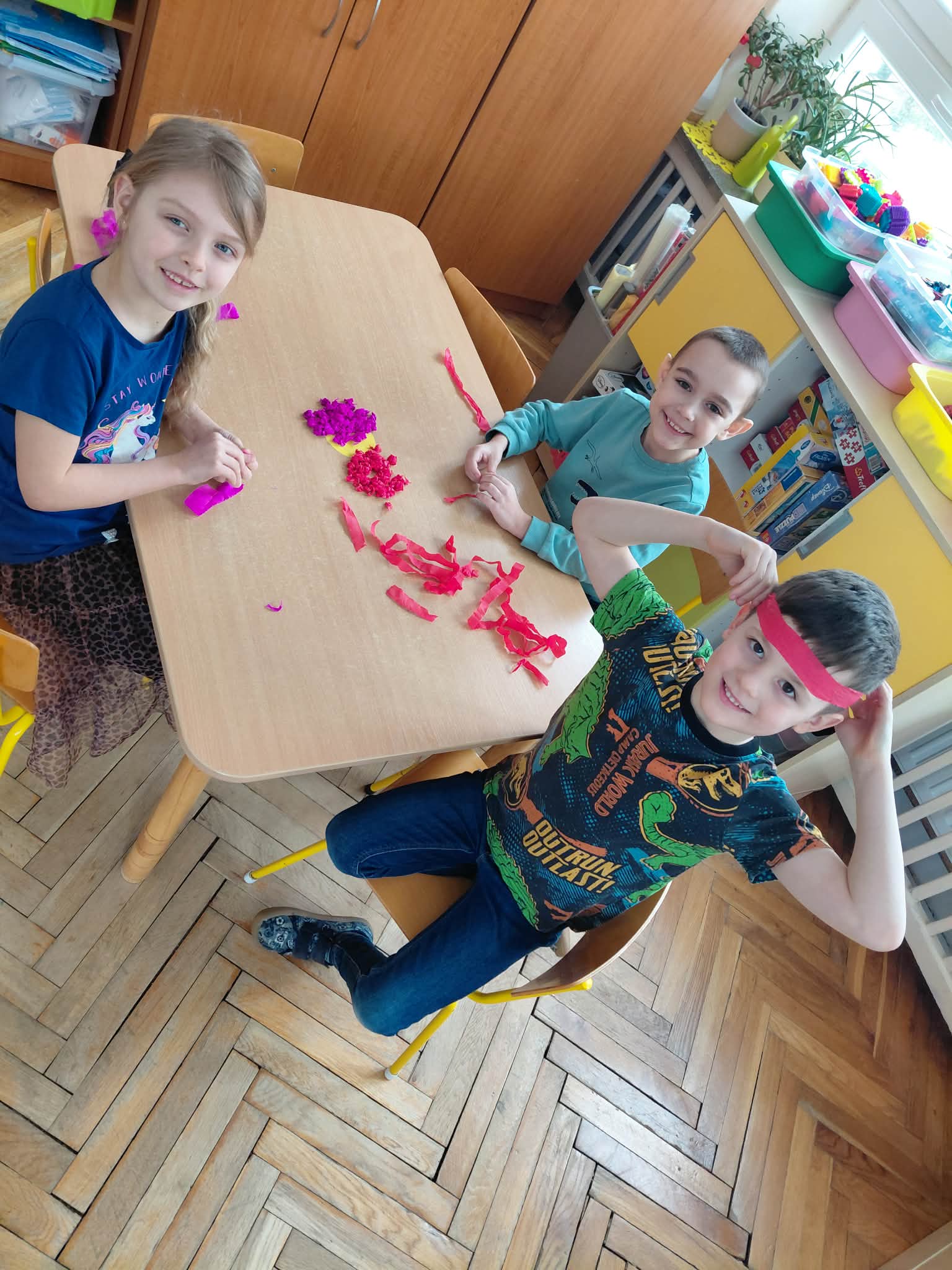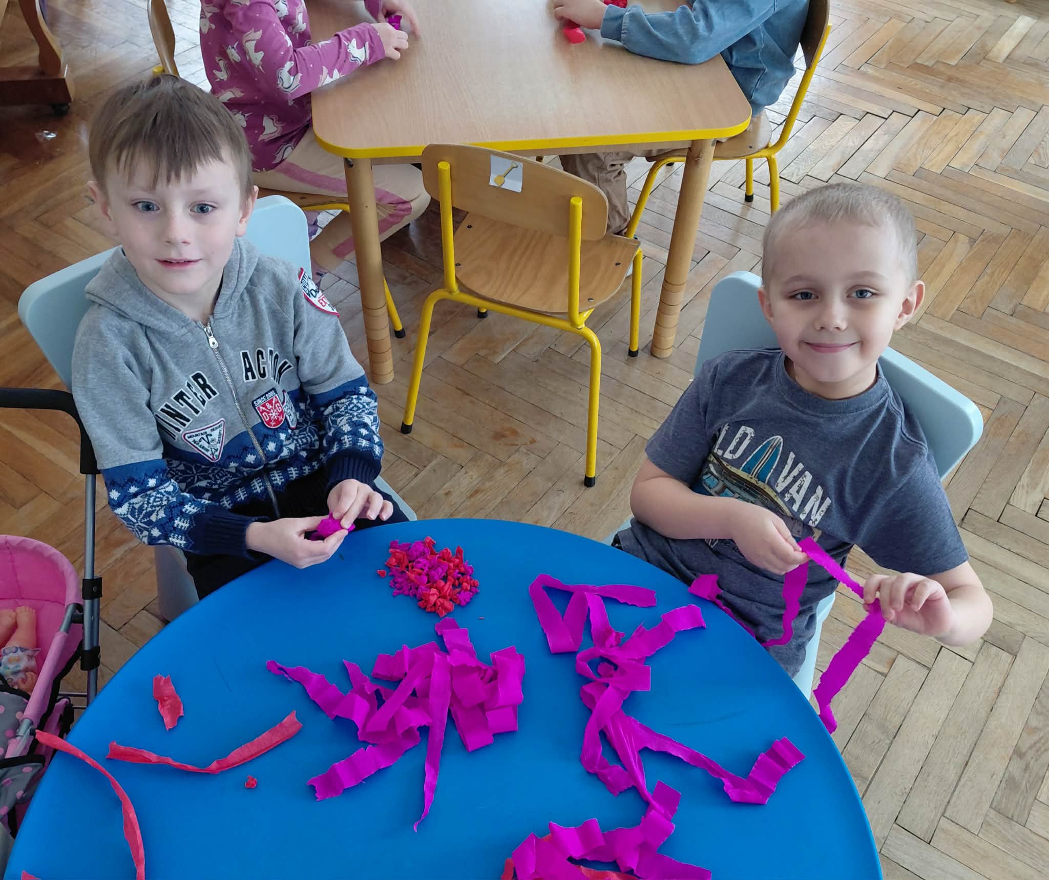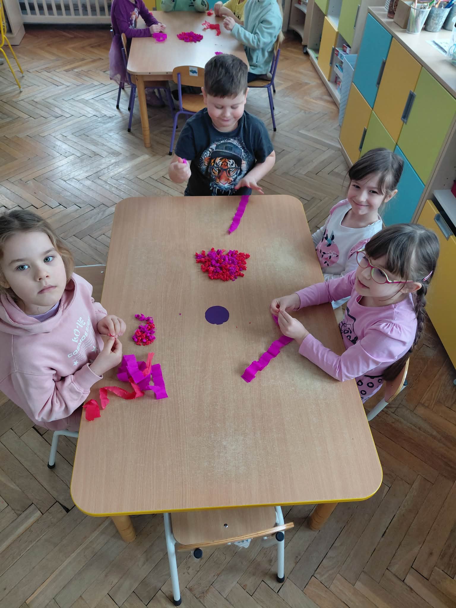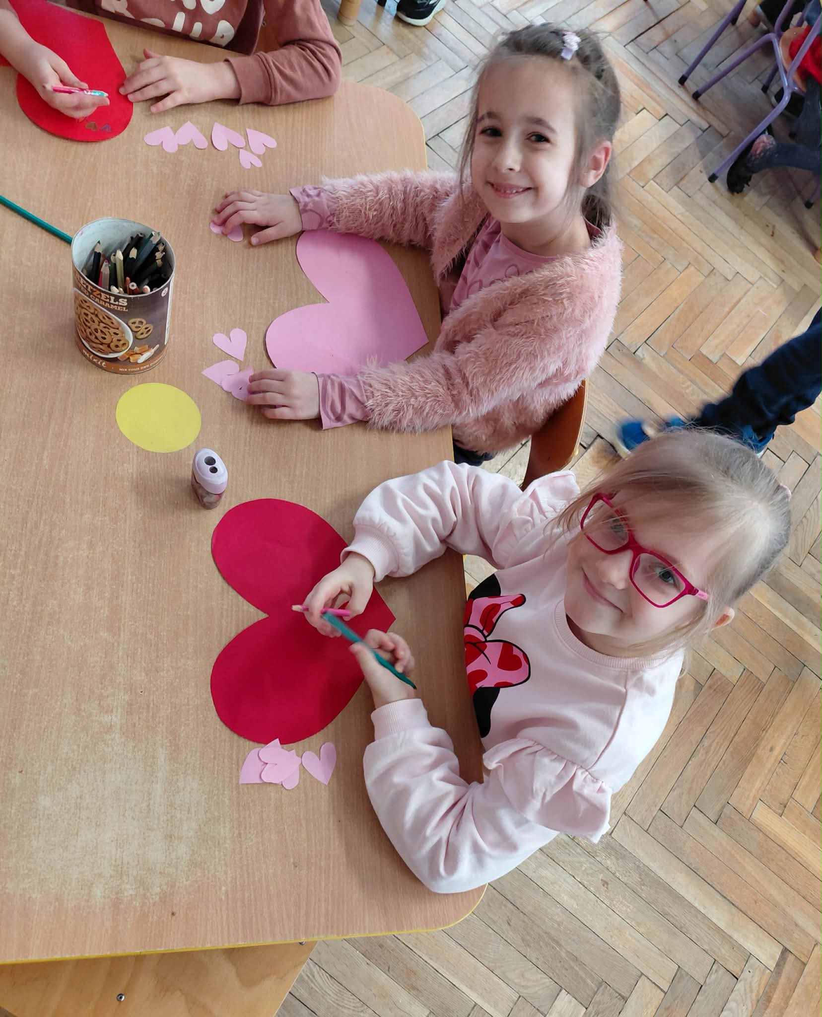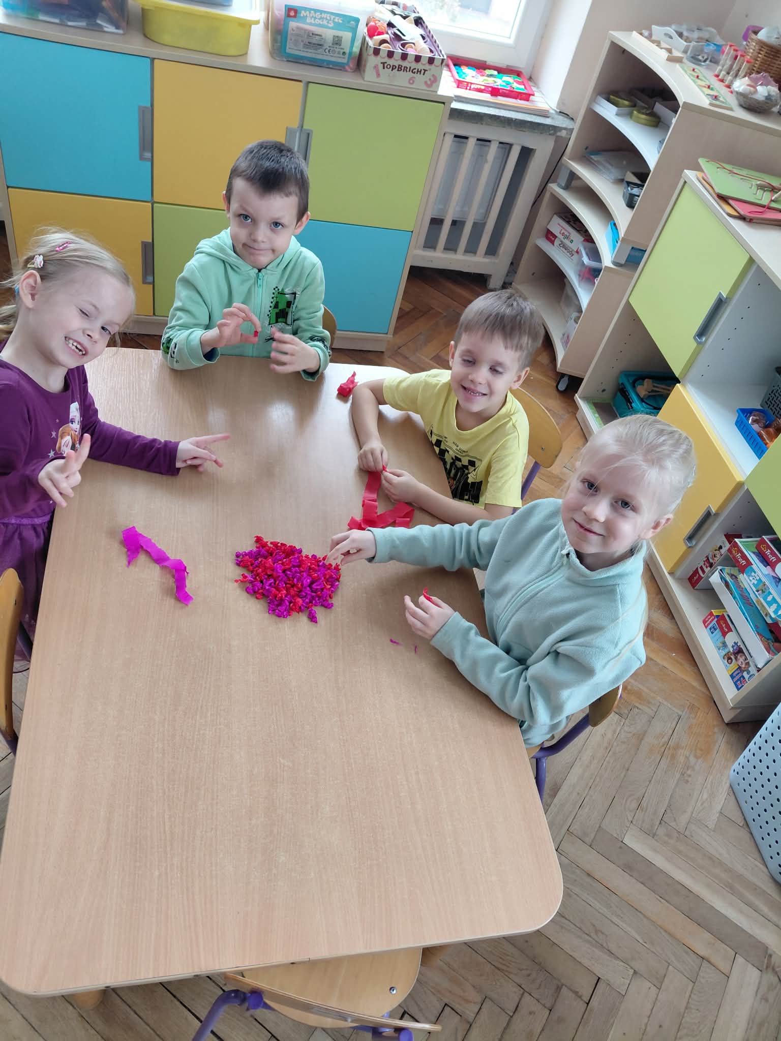 W lutym świętowaliśmy w naszej grupie WALENTYNKI. W piątek rozdaliśmy sobie wszyscy wykonane przez dzieci walentynki z naszej poczty walentynkowej. Wykonaliśmy również walentynkową pracę plastyczną, składaliśmy sobie życzenia i rozmawialiśmy o tym święcie. Chętne dzieci przyszły ubrane na czerwono.