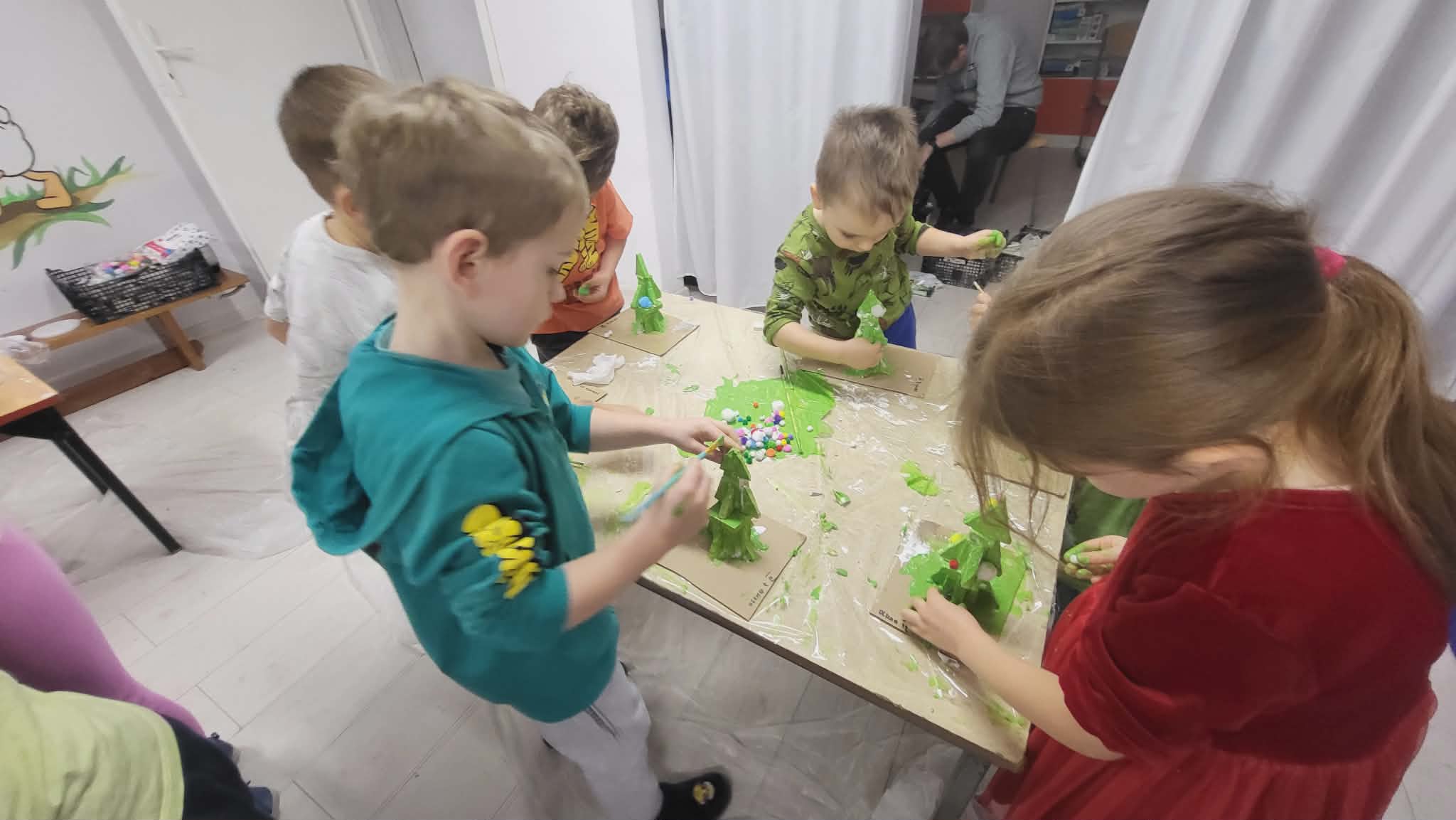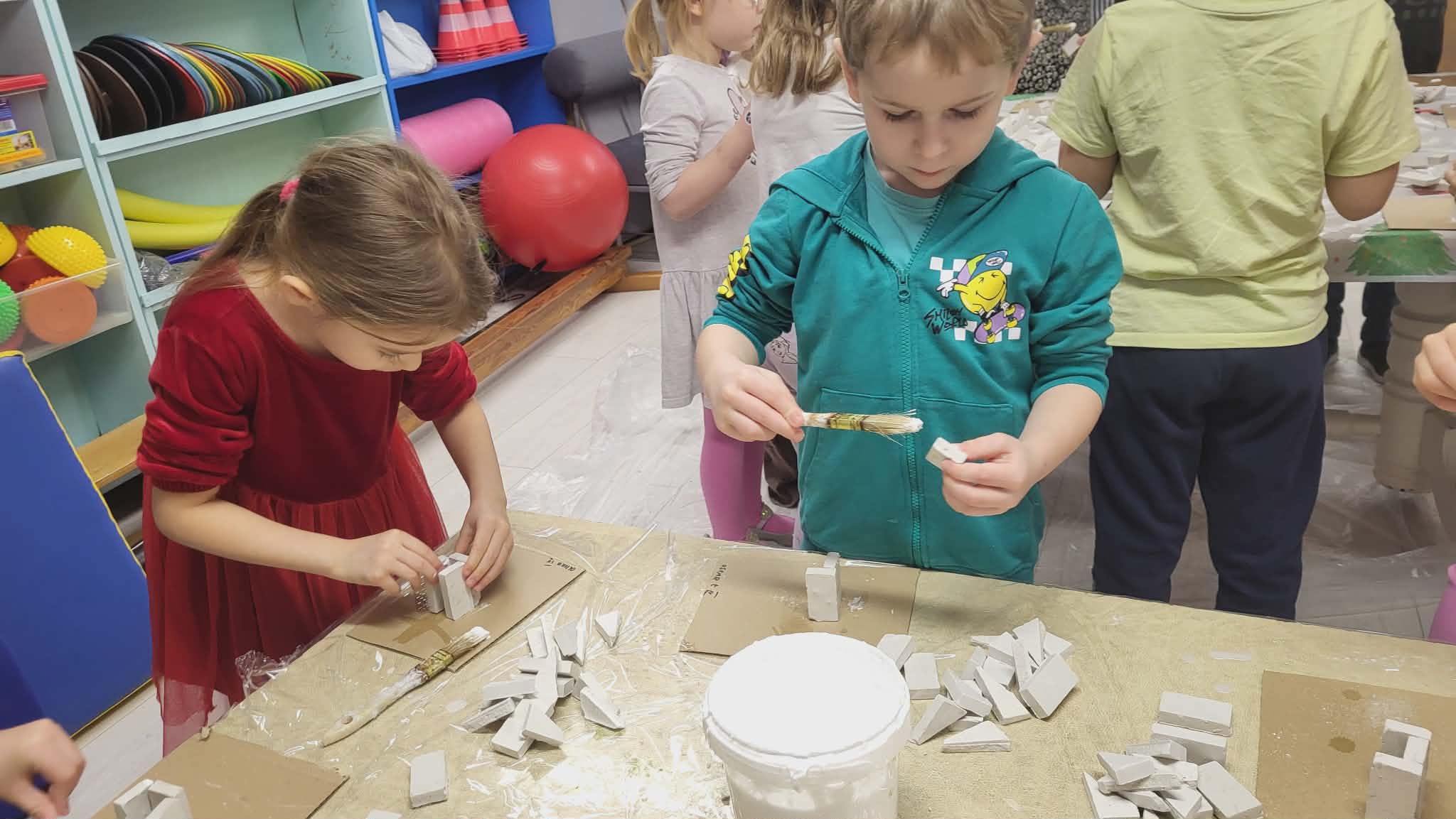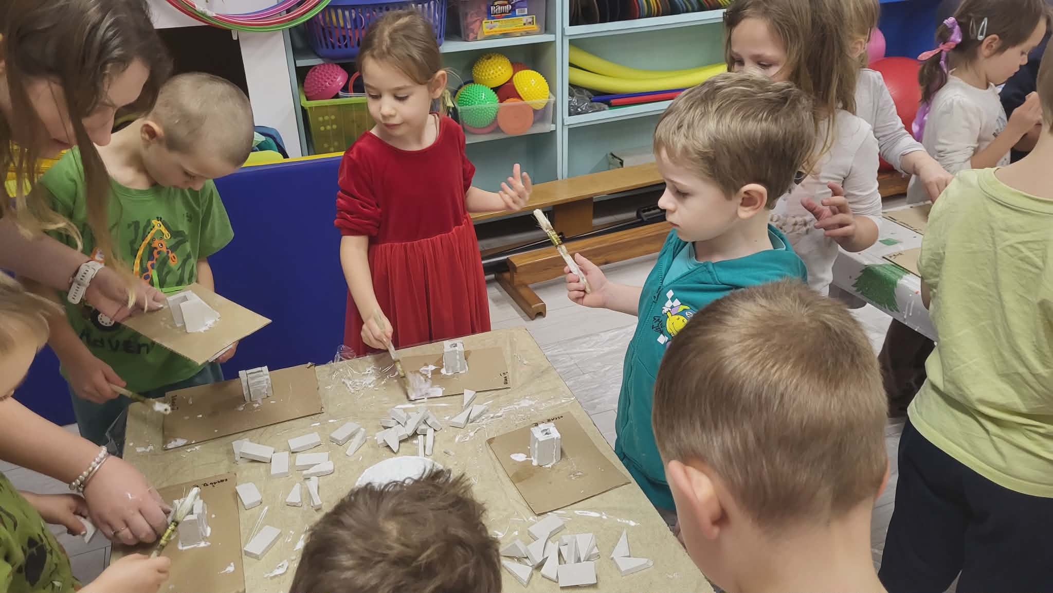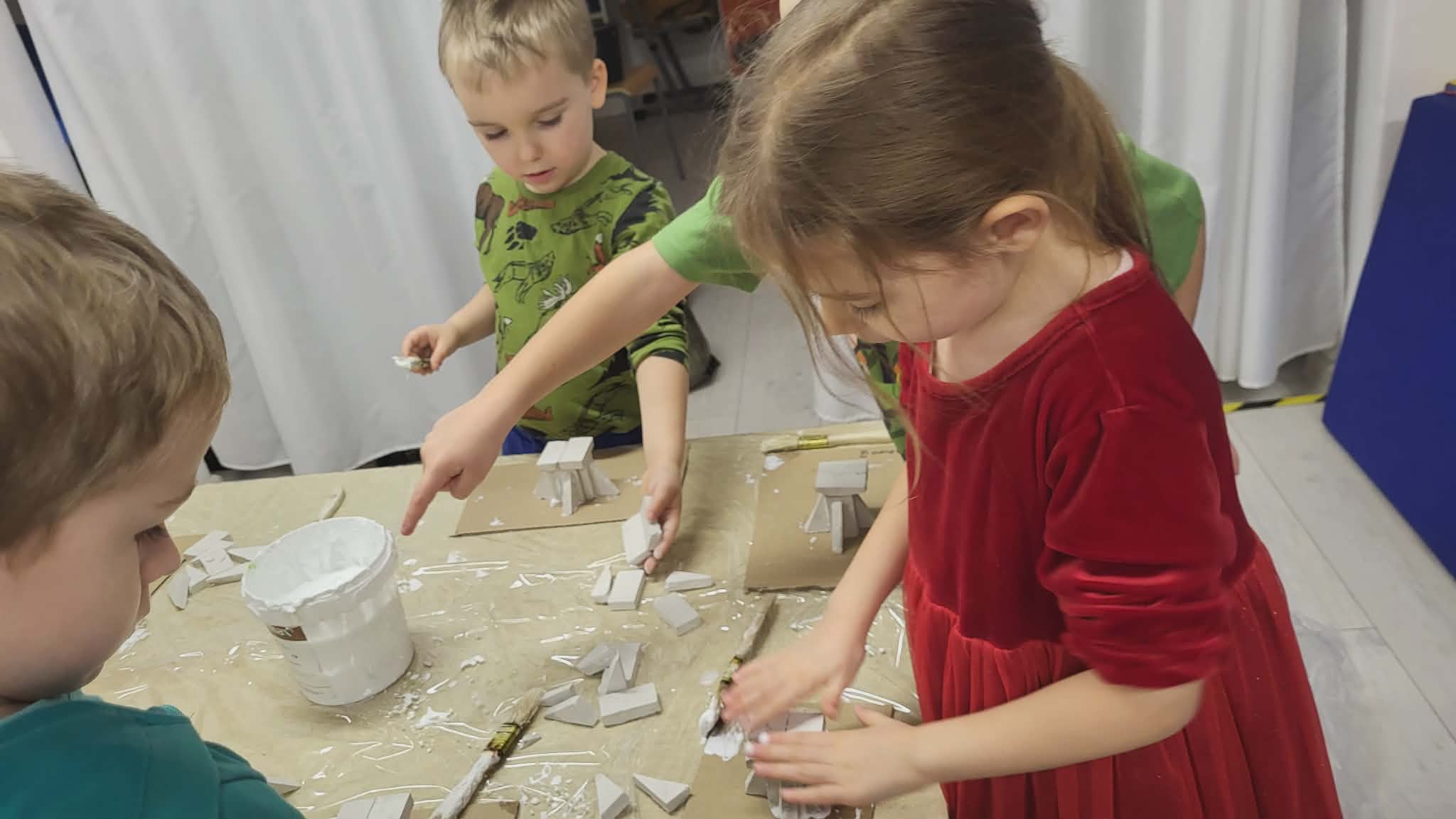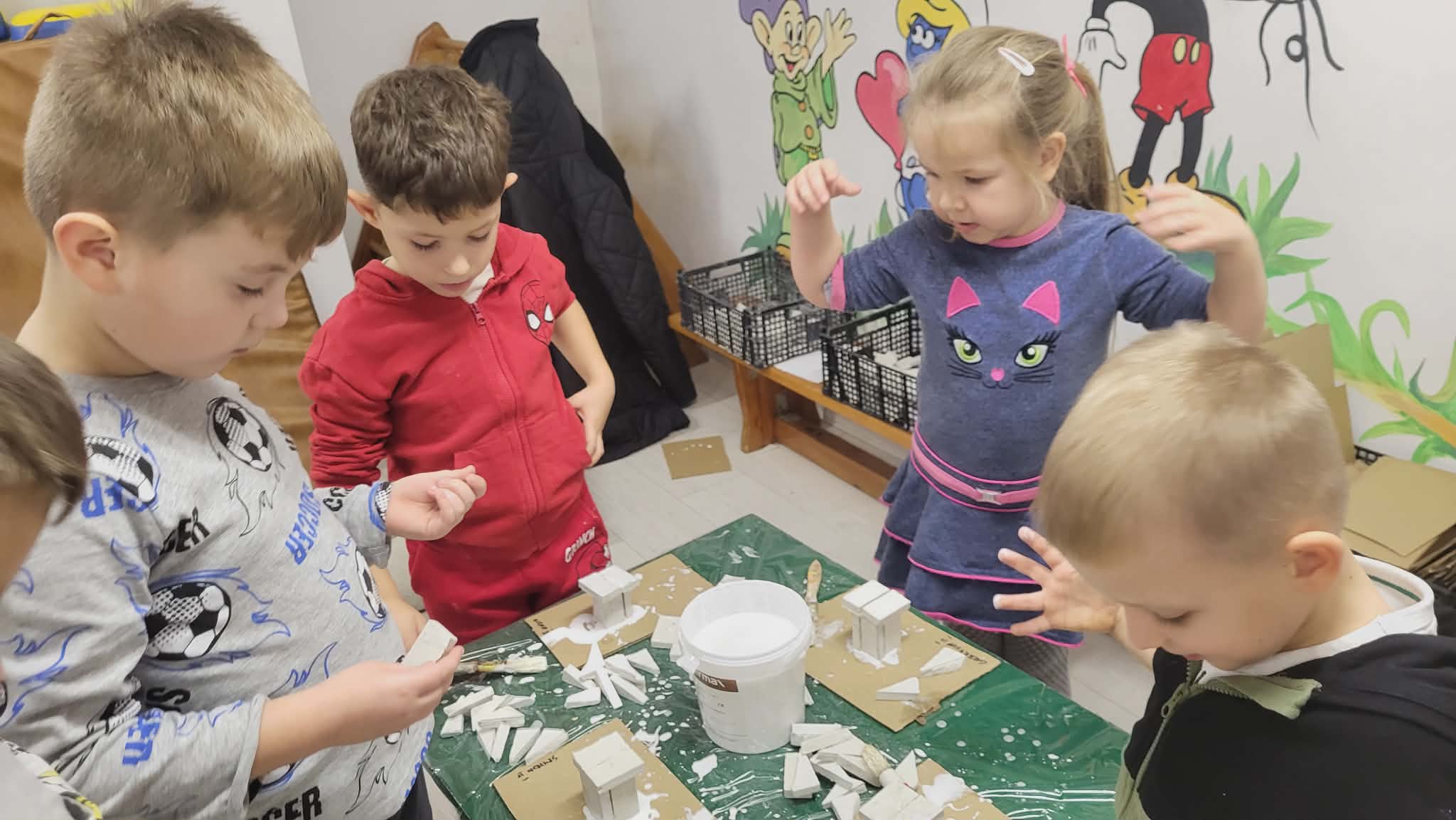W ramach świątecznej niespodzianki dla Dzieci Rada Rodziców postanowiła sfinansować warsztaty z majsterkowania. Dzieci przygotowywały murowane choinki . Podczas zajęć zamieniły się w małych budowniczych i za pomocą prawdziwych miniaturowych cegiełek, kleju i zaprawy murarskiej stworzyły swoje dzieła.