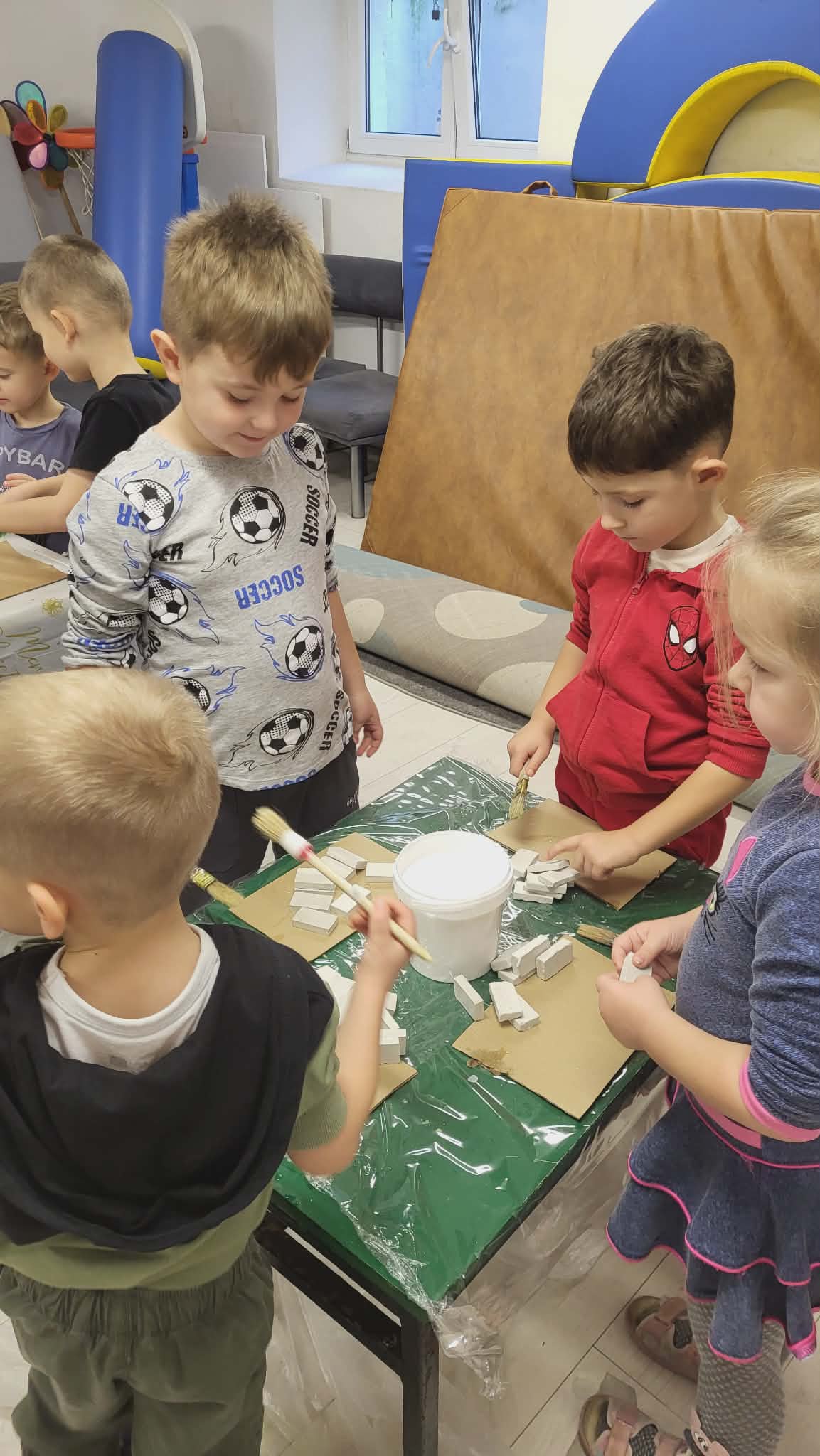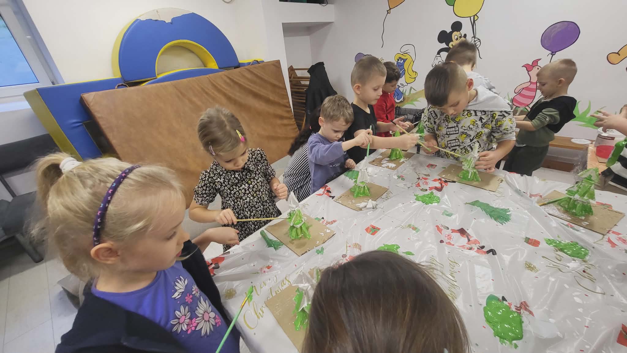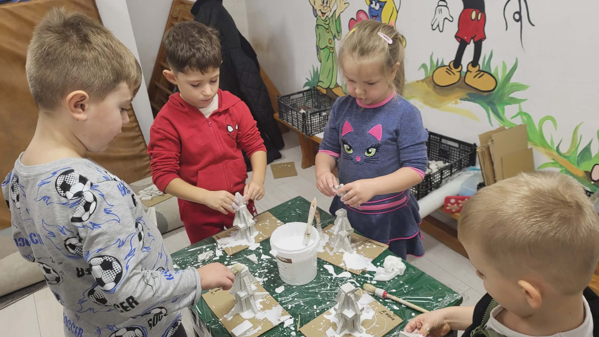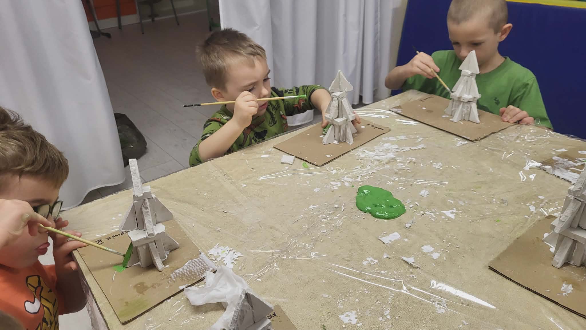 W ramach świątecznej niespodzianki dla Dzieci Rada Rodziców postanowiła sfinansować warsztaty z majsterkowania. Dzieci przygotowywały murowane choinki . Podczas zajęć zamieniły się w małych budowniczych i za pomocą prawdziwych miniaturowych cegiełek, kleju i zaprawy murarskiej stworzyły swoje dzieła.