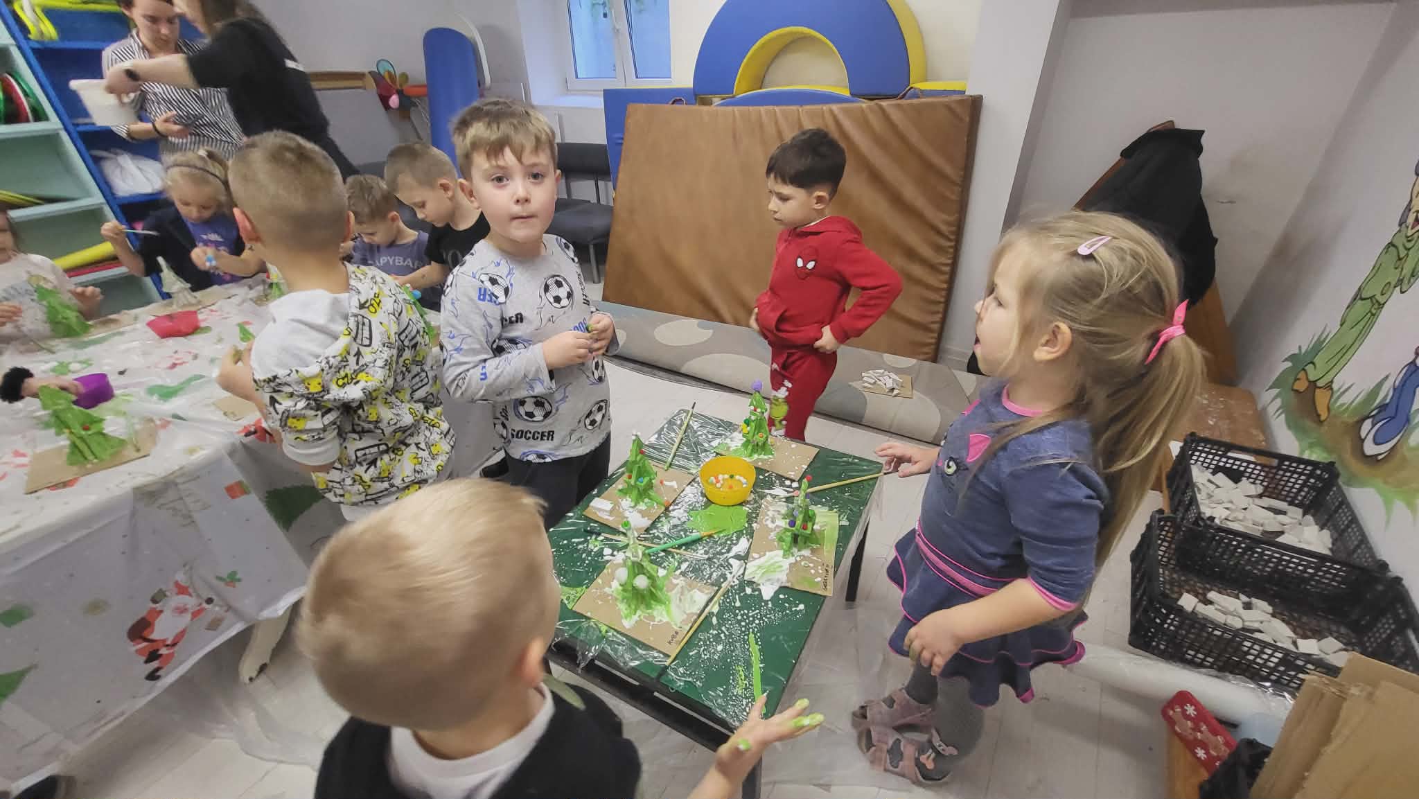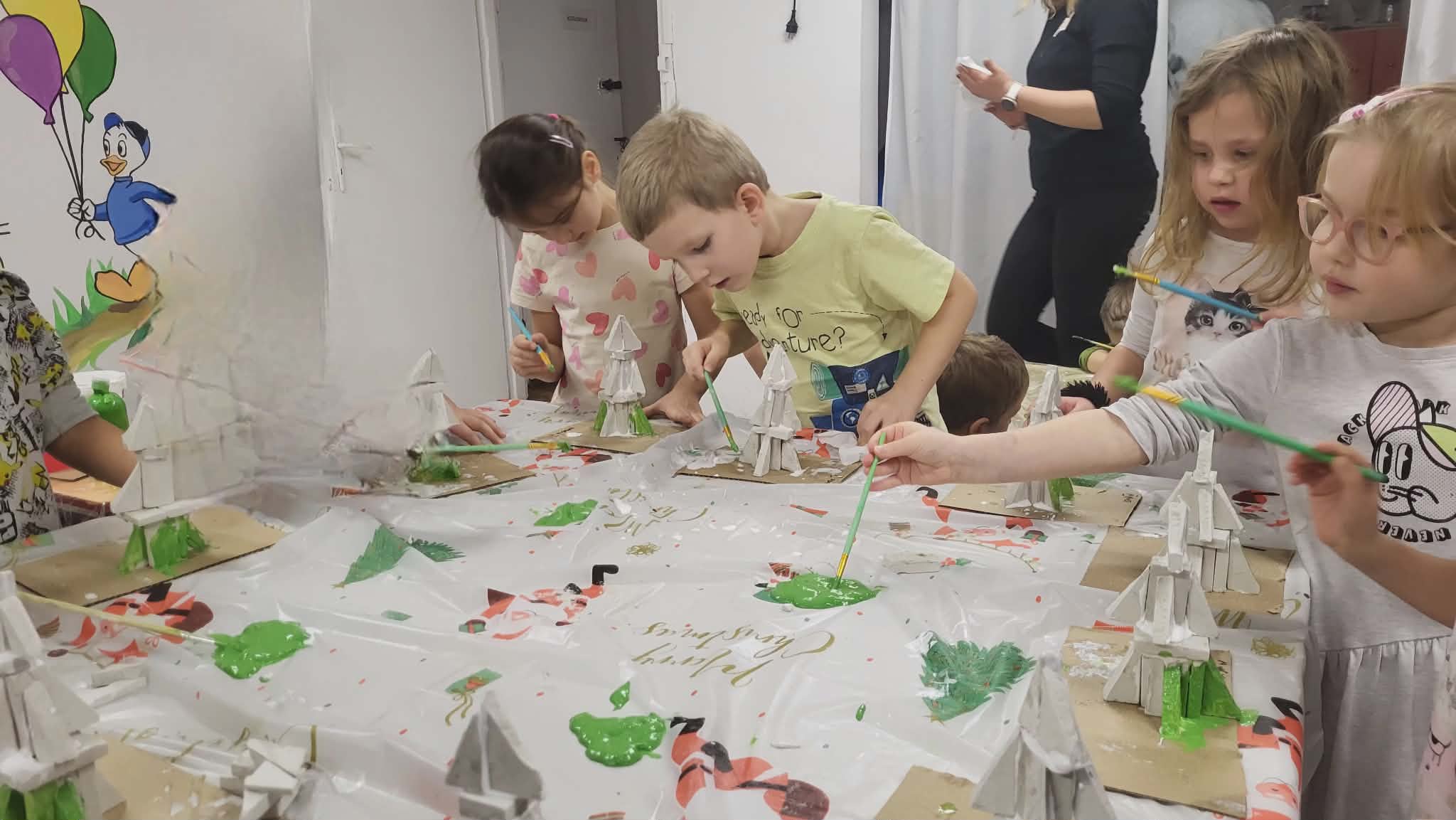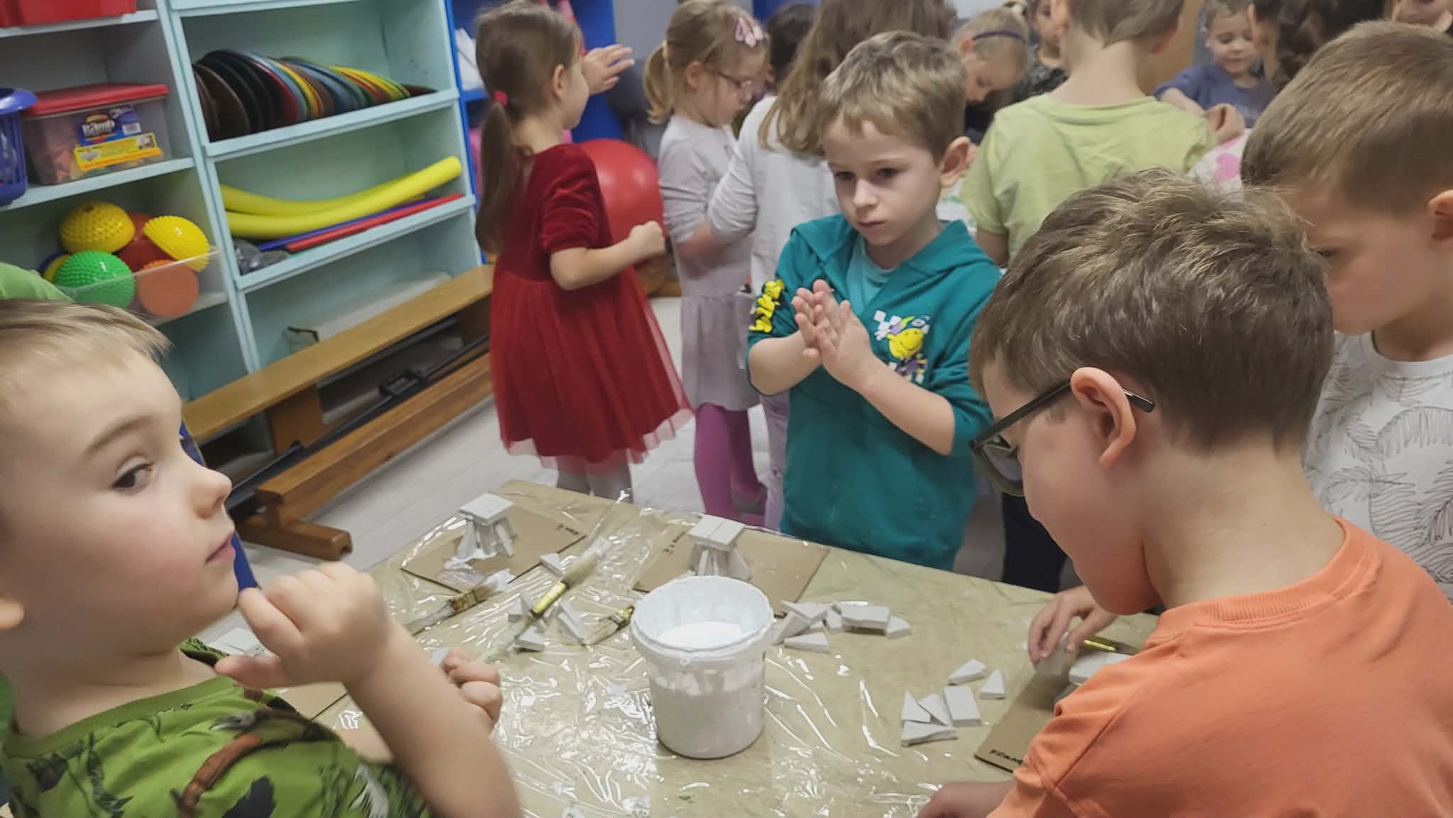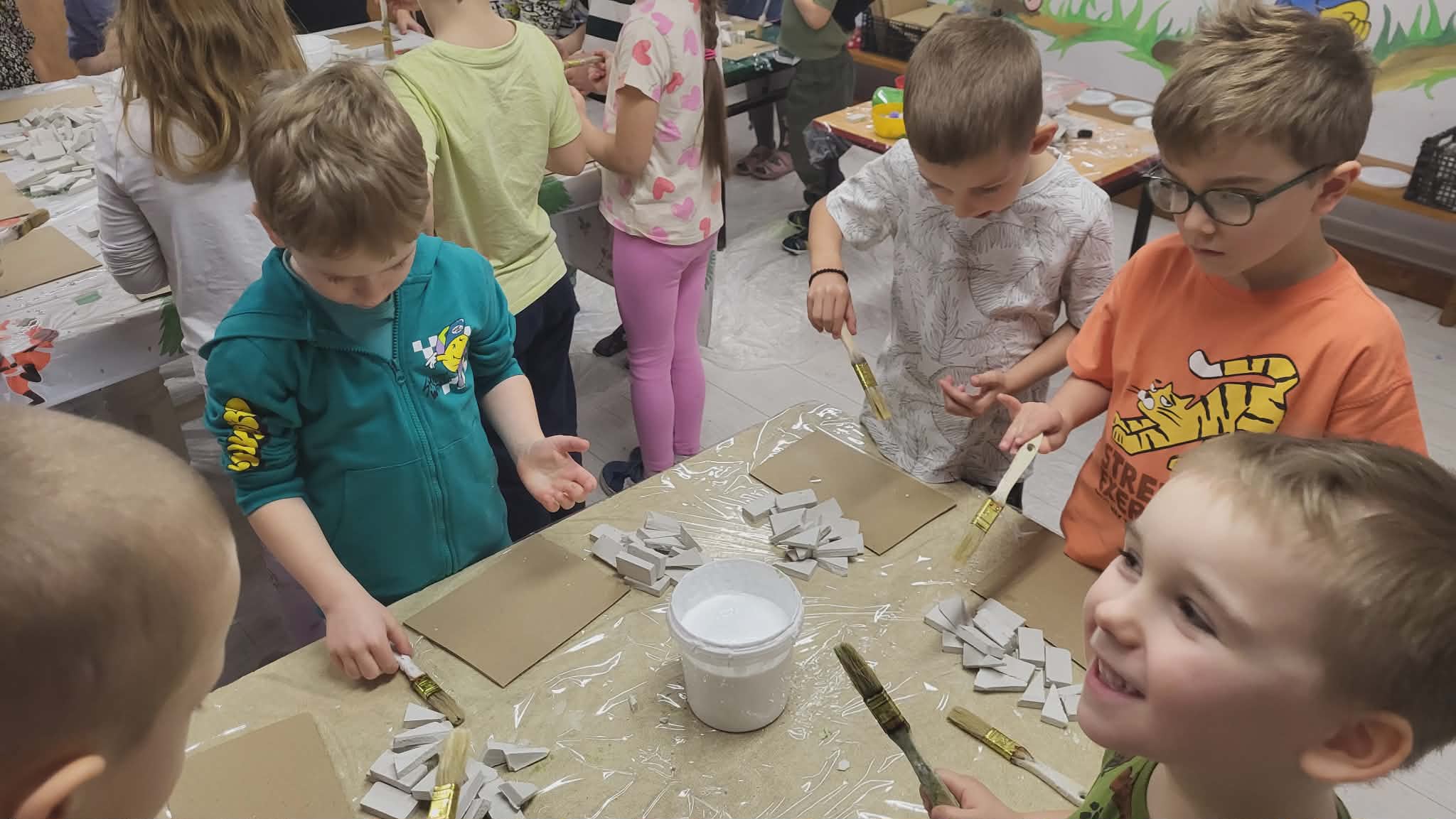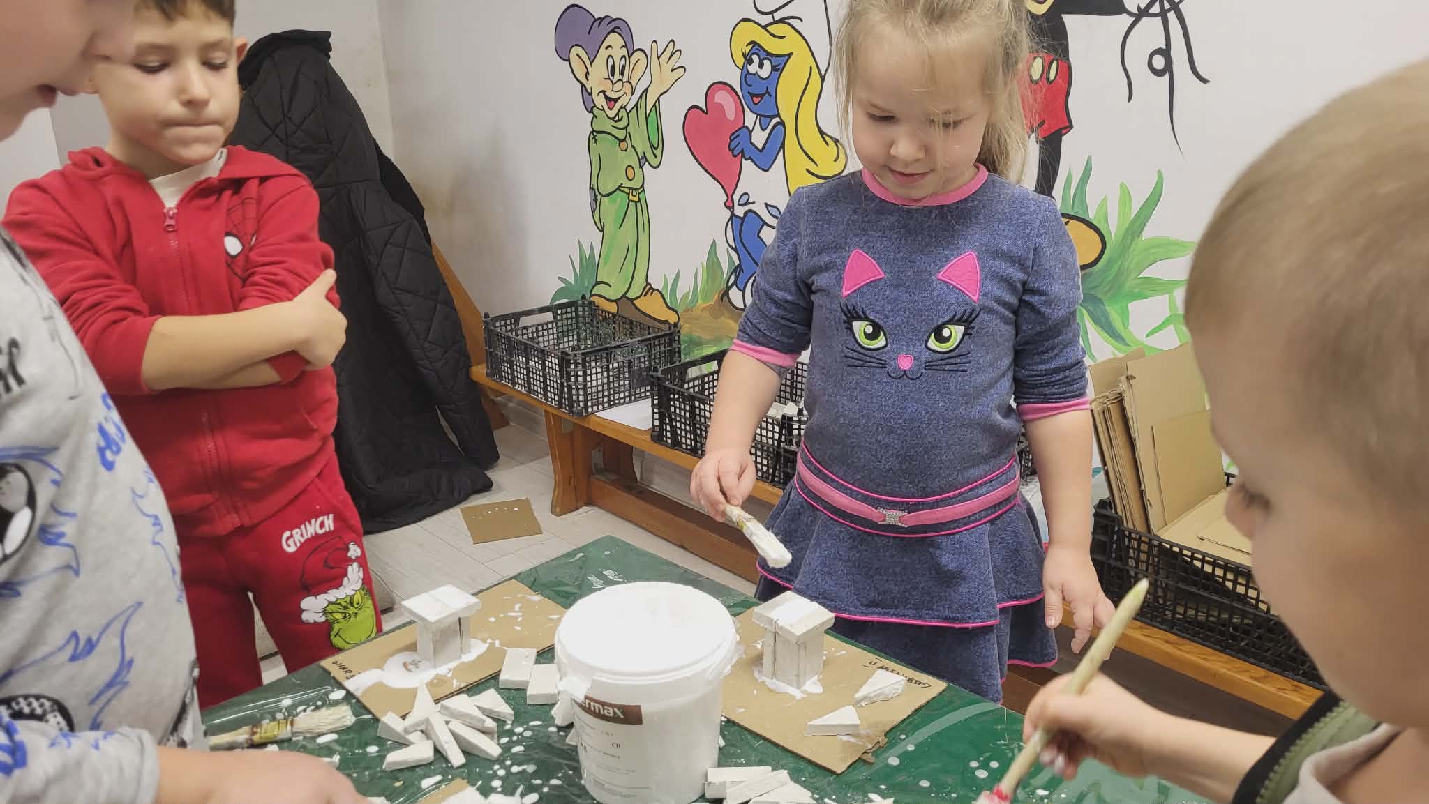 W ramach świątecznej niespodzianki dla Dzieci Rada Rodziców postanowiła sfinansować warsztaty z majsterkowania. Dzieci przygotowywały murowane choinki . Podczas zajęć zamieniły się w małych budowniczych i za pomocą prawdziwych miniaturowych cegiełek, kleju i zaprawy murarskiej stworzyły swoje dzieła.