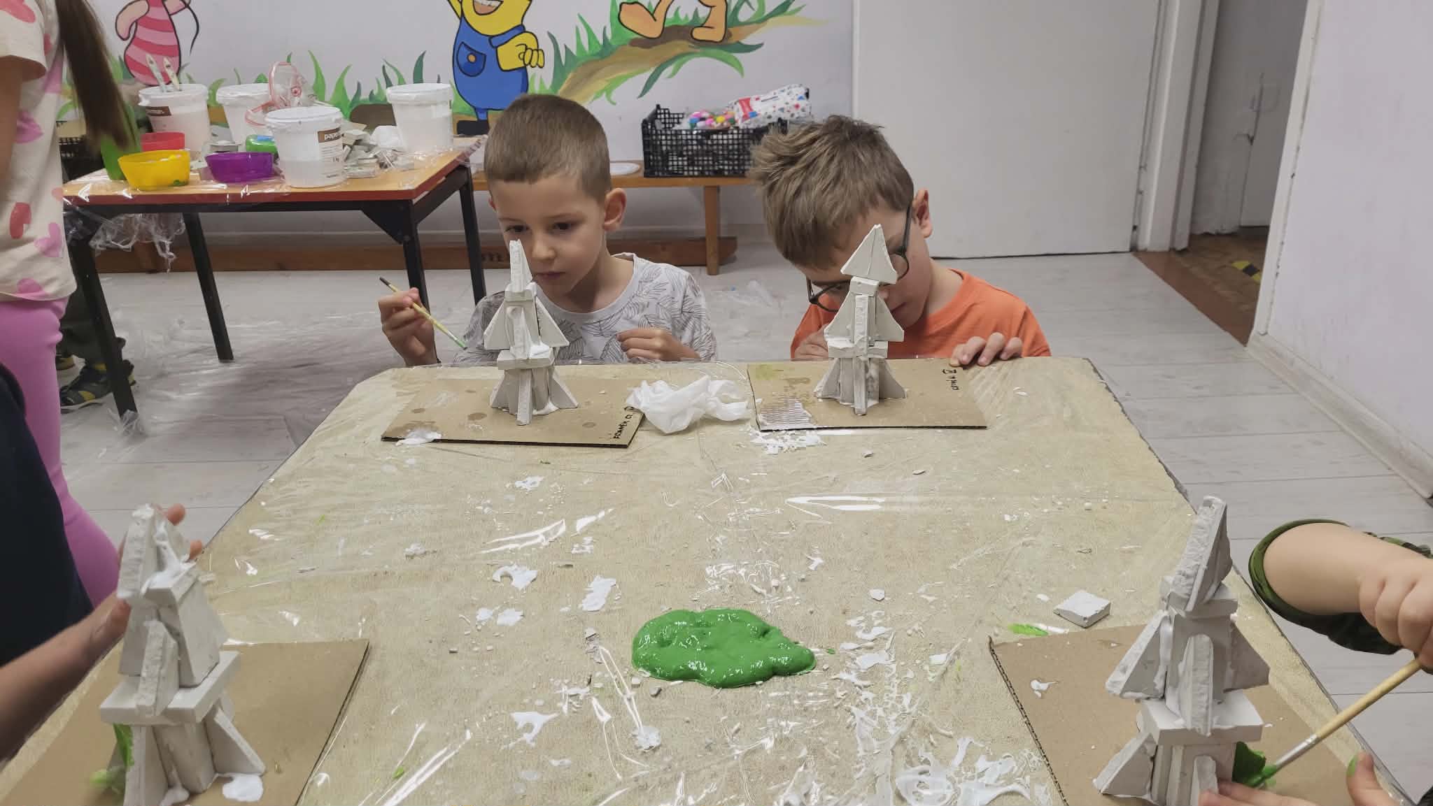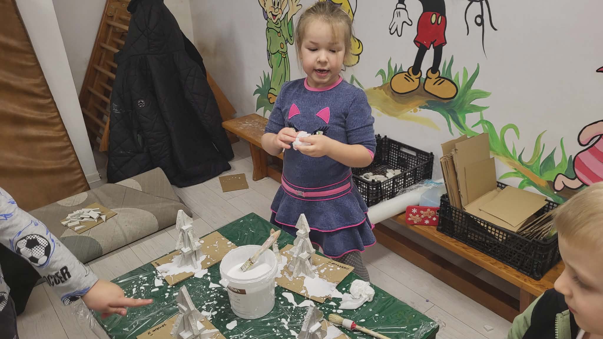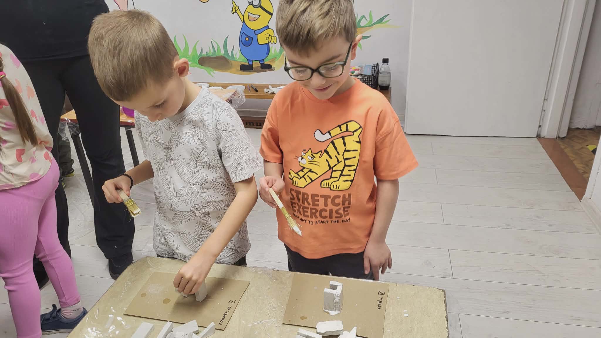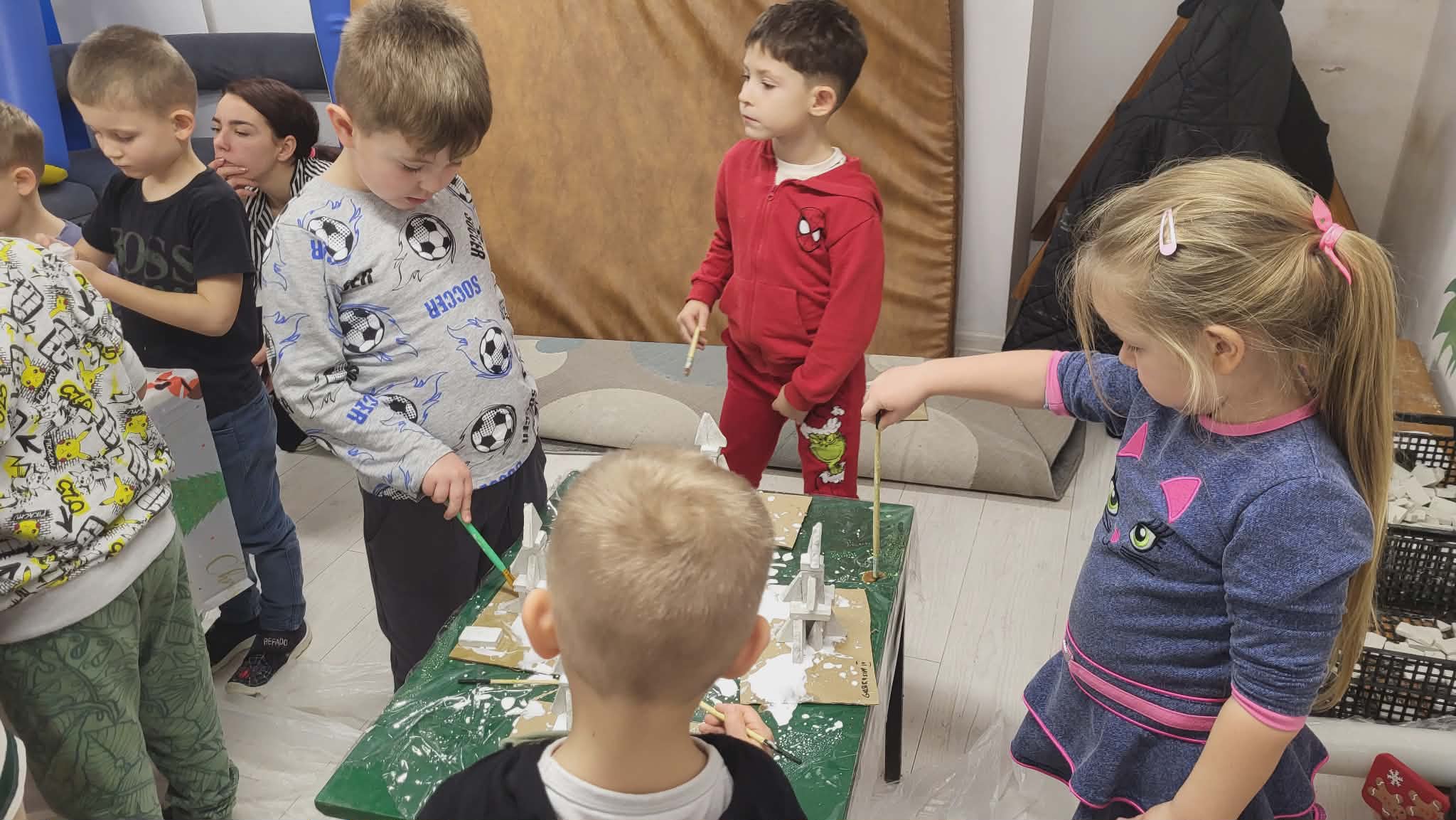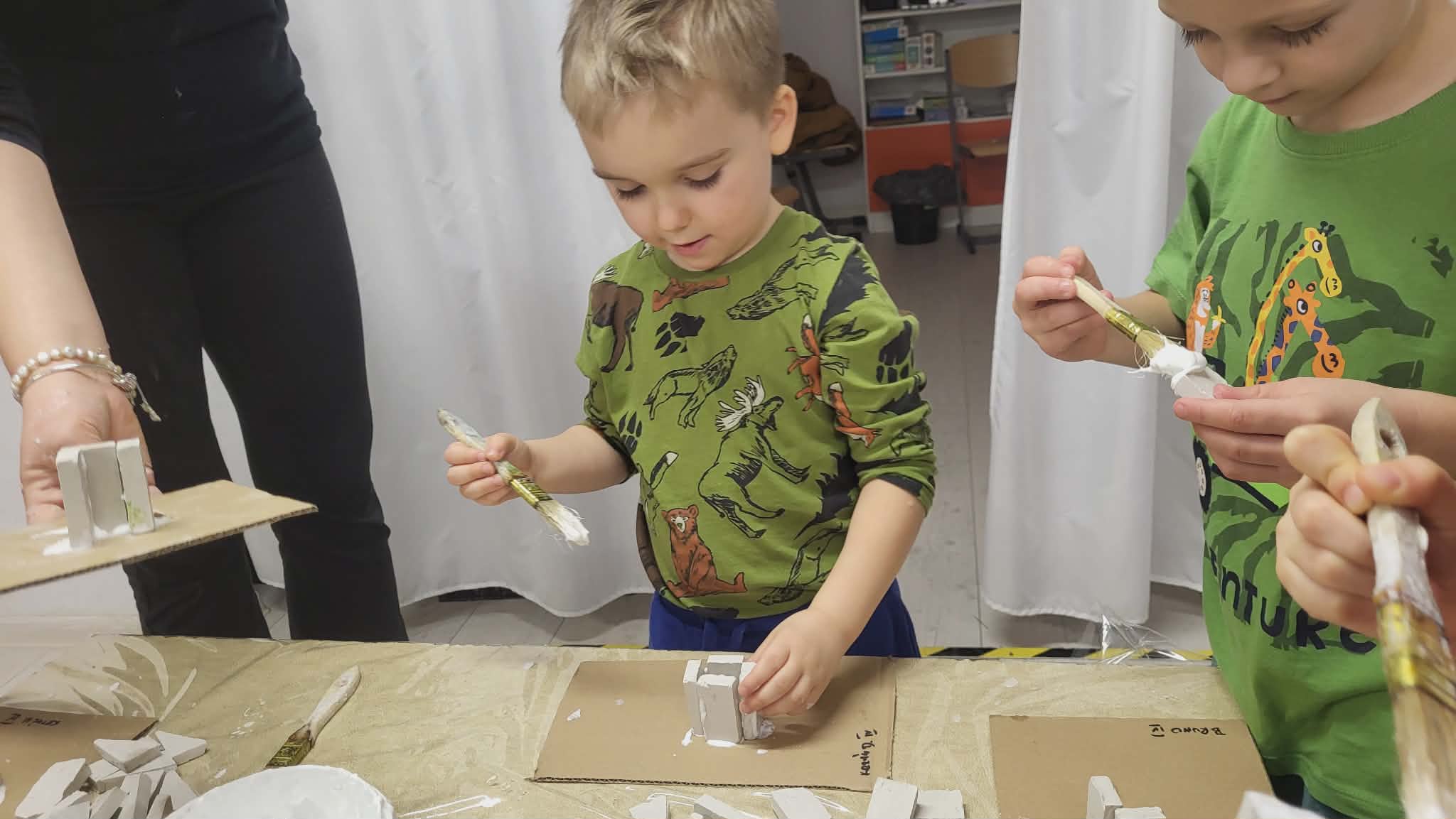 W ramach świątecznej niespodzianki dla Dzieci Rada Rodziców postanowiła sfinansować warsztaty z majsterkowania. Dzieci przygotowywały murowane choinki . Podczas zajęć zamieniły się w małych budowniczych i za pomocą prawdziwych miniaturowych cegiełek, kleju i zaprawy murarskiej stworzyły swoje dzieła.