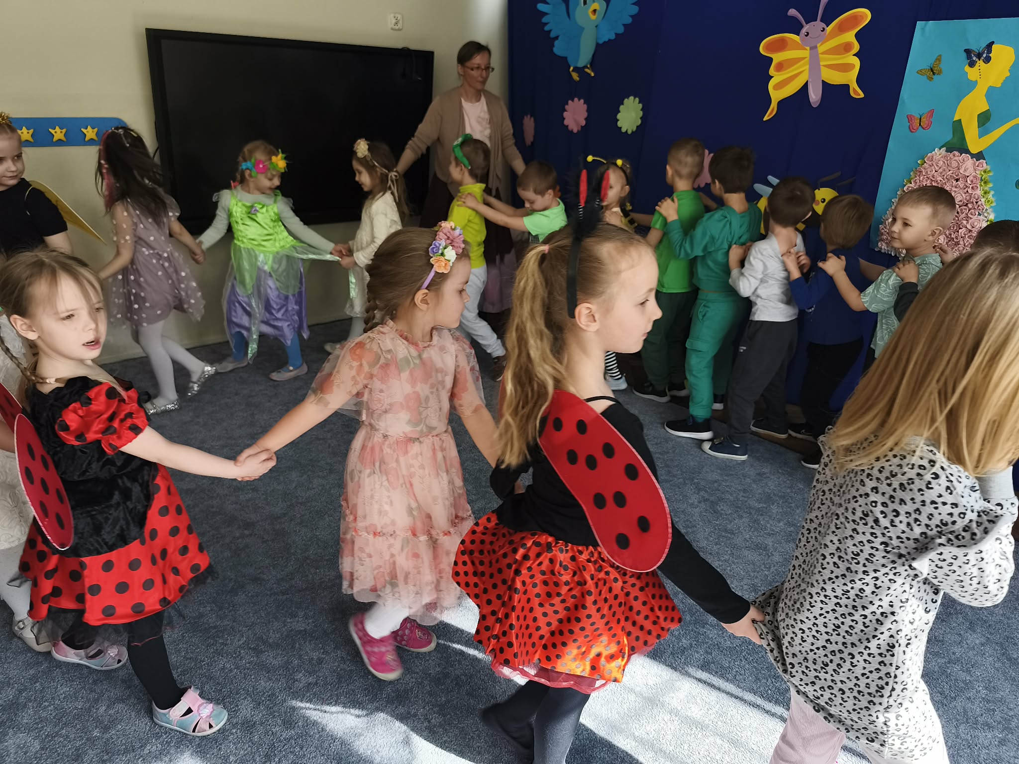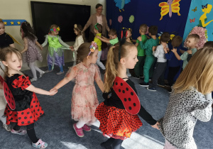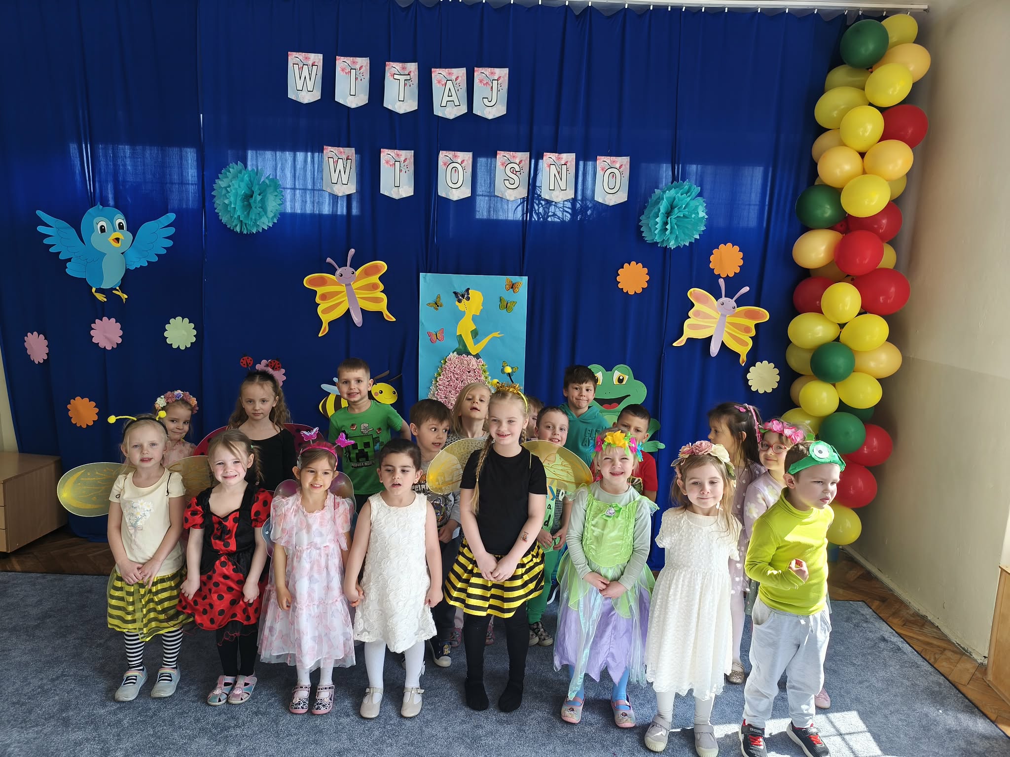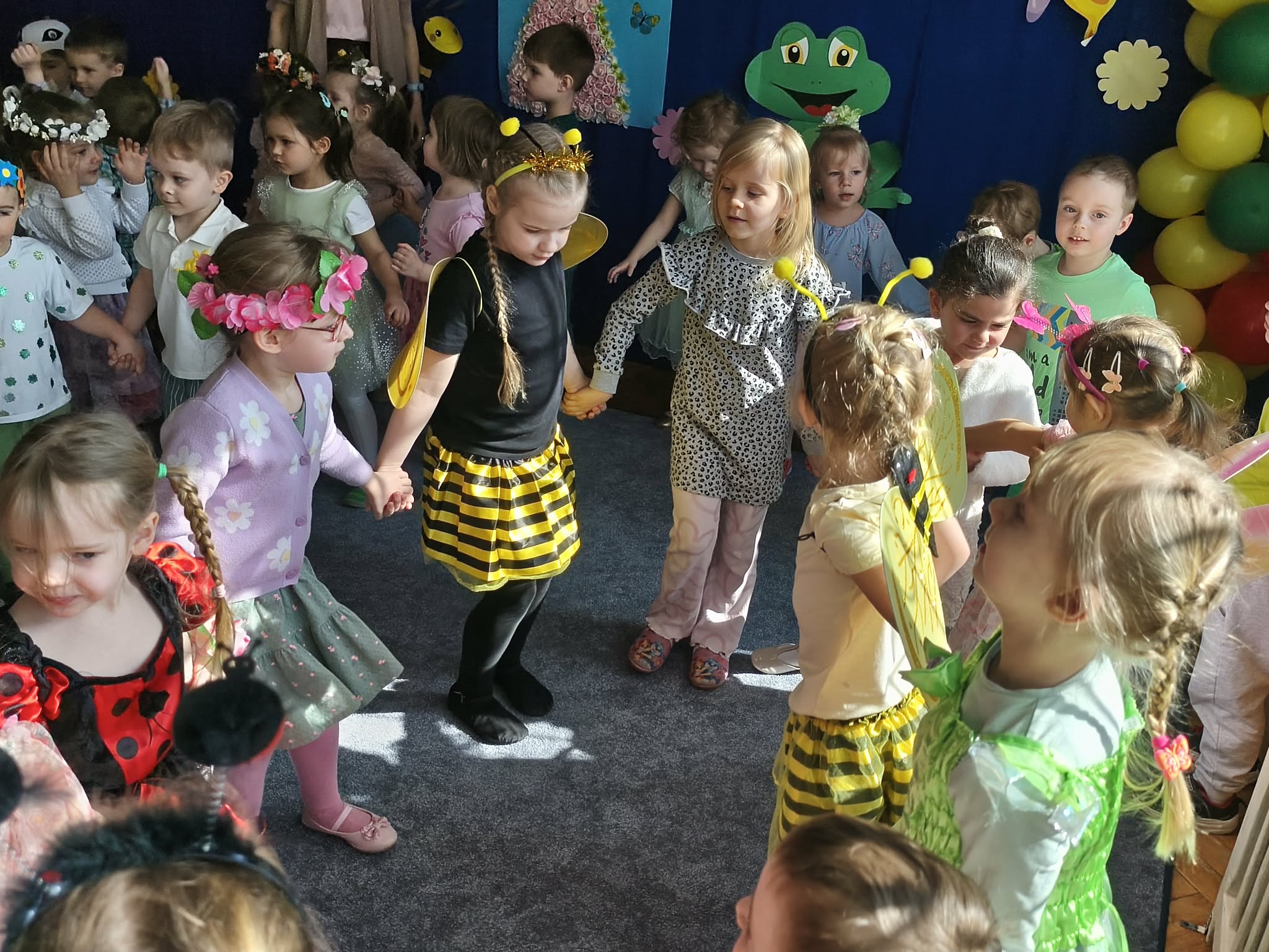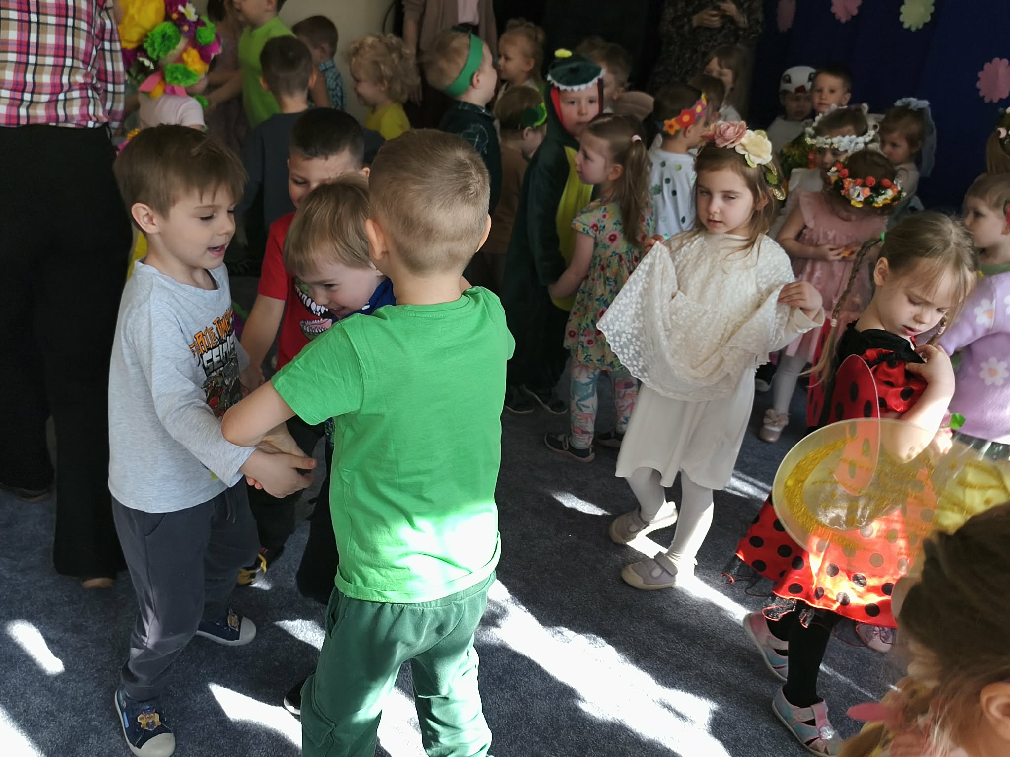 Zabawą na wspólnym balu, powitaliśmy wiosnę. Jeśli wiosna, to nie mogło zabraknąć owadów, ptaków, zwierzątek, kwiatów i oczywiście pań i panów wiosen. Gdzie nie spojrzeć...WIOSNA.