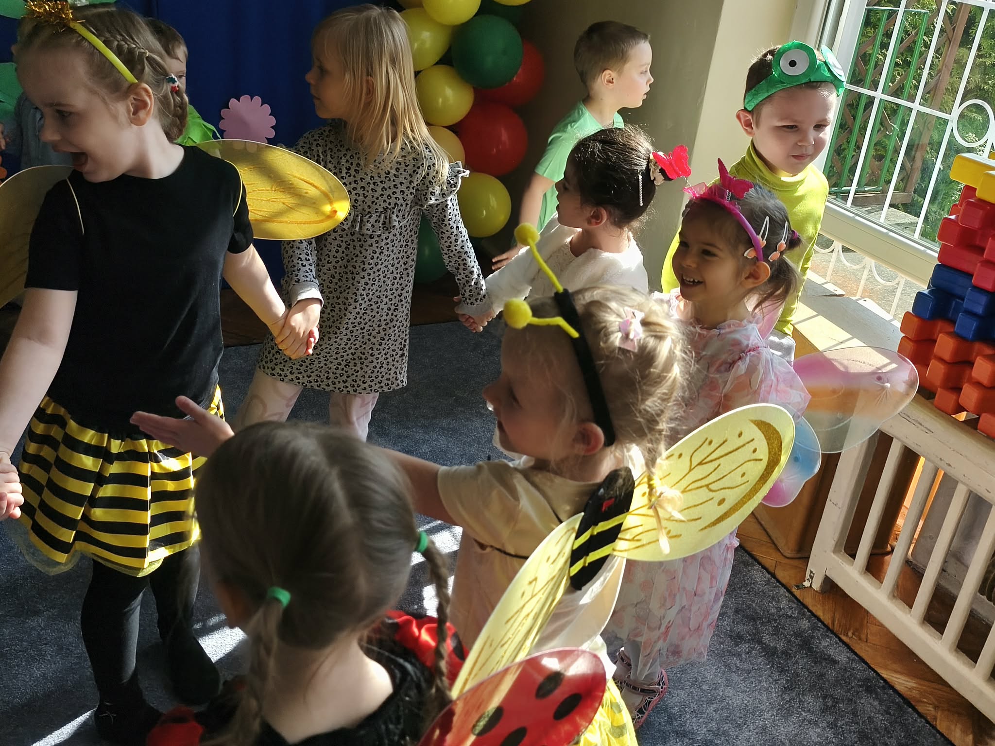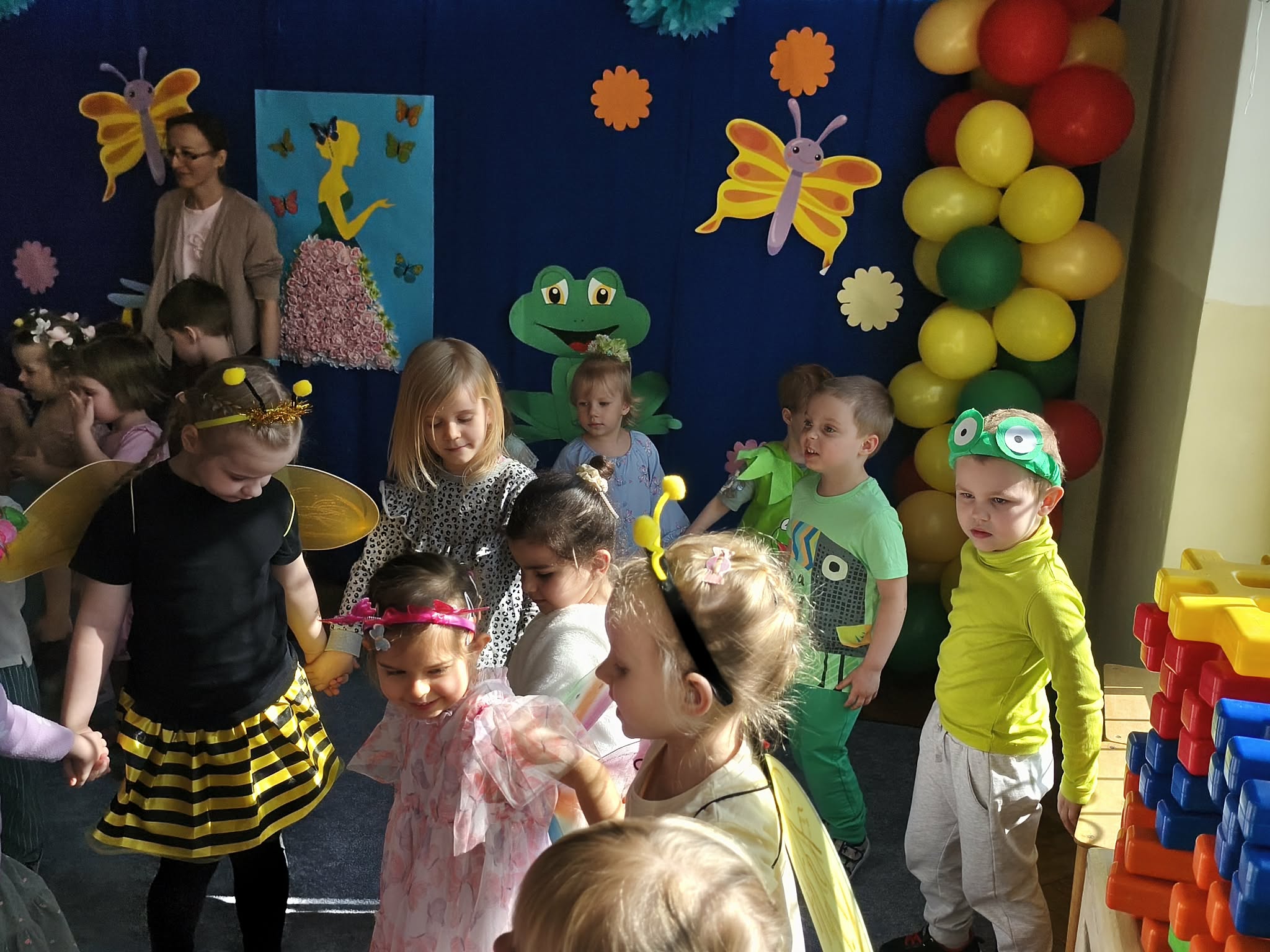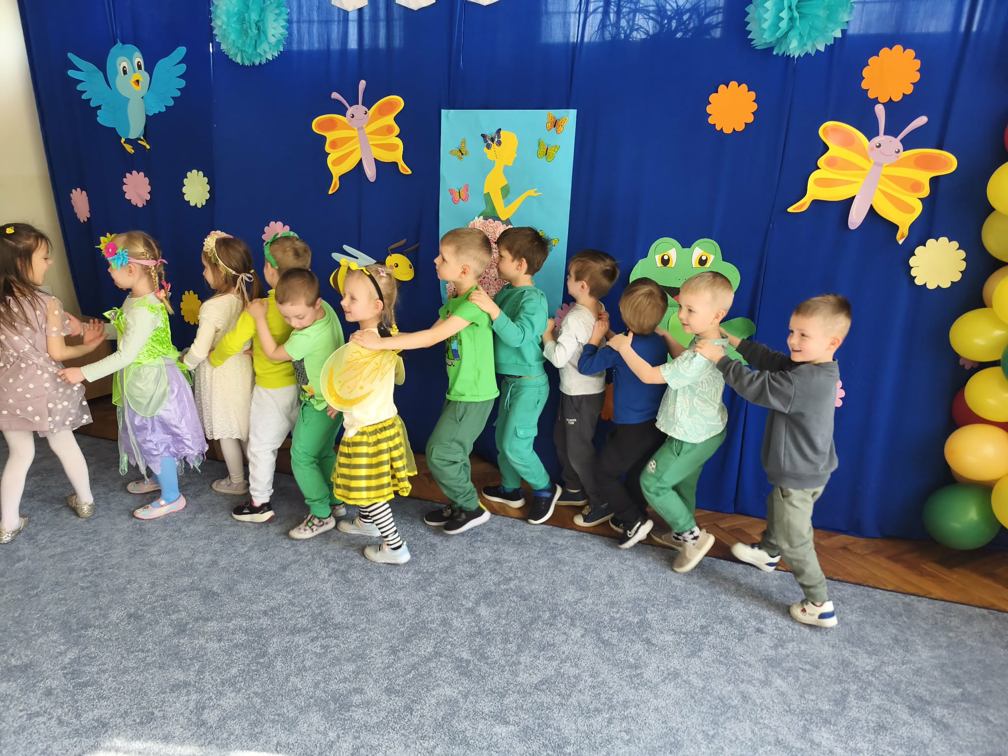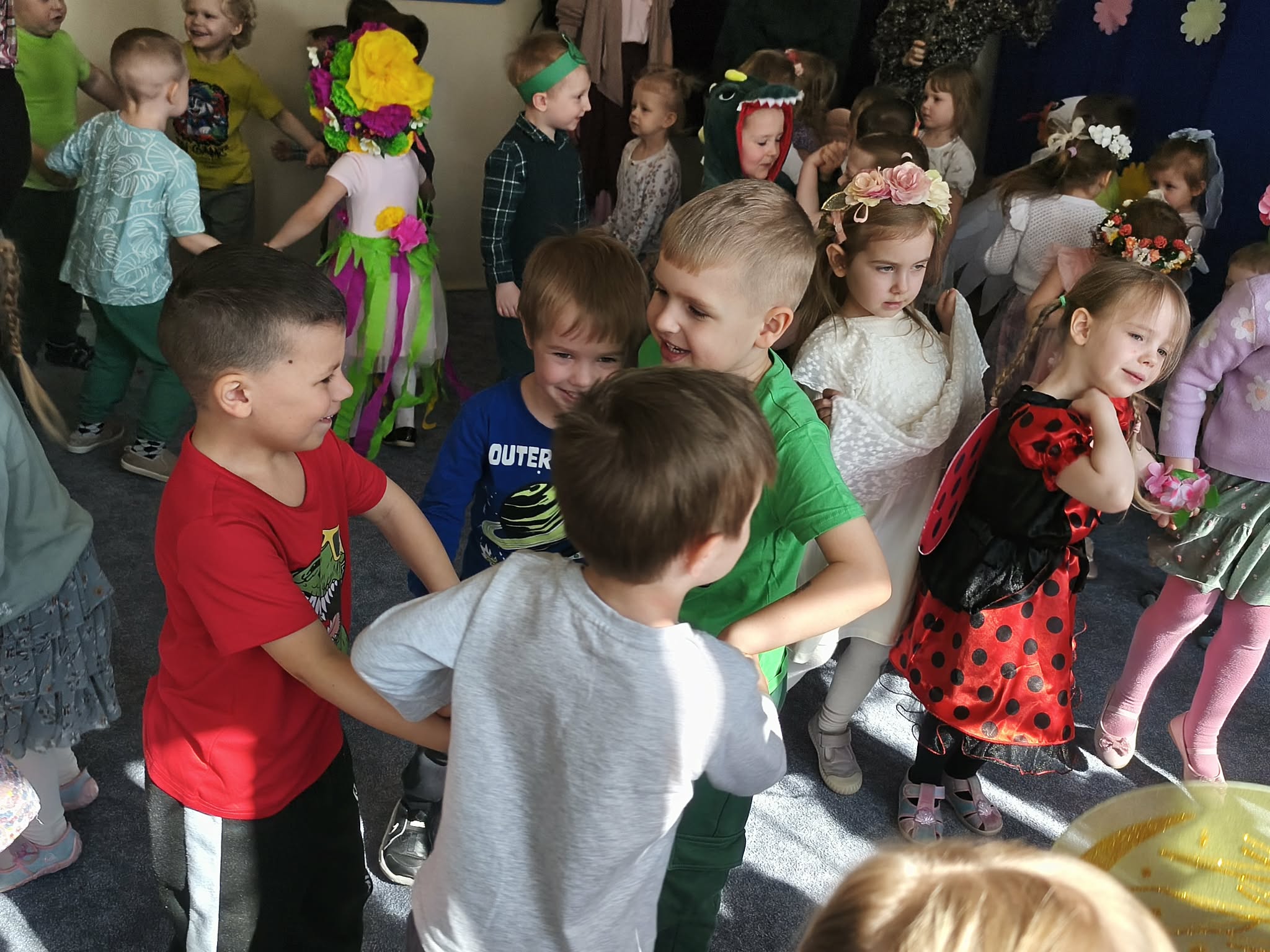 Zabawą na wspólnym balu, powitaliśmy wiosnę. Jeśli wiosna, to nie mogło zabraknąć owadów, ptaków, zwierzątek, kwiatów i oczywiście pań i panów wiosen. Gdzie nie spojrzeć...WIOSNA.