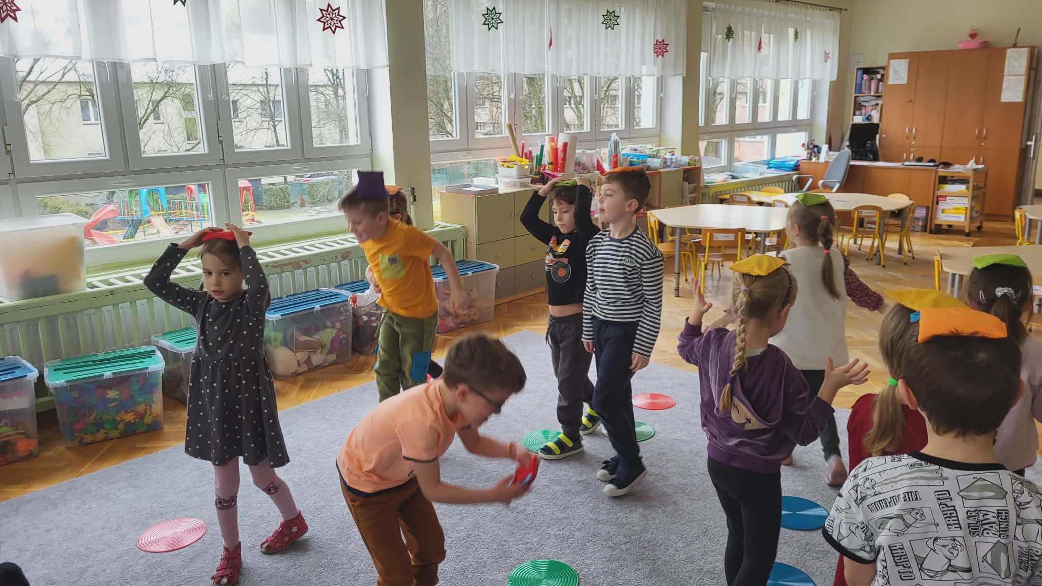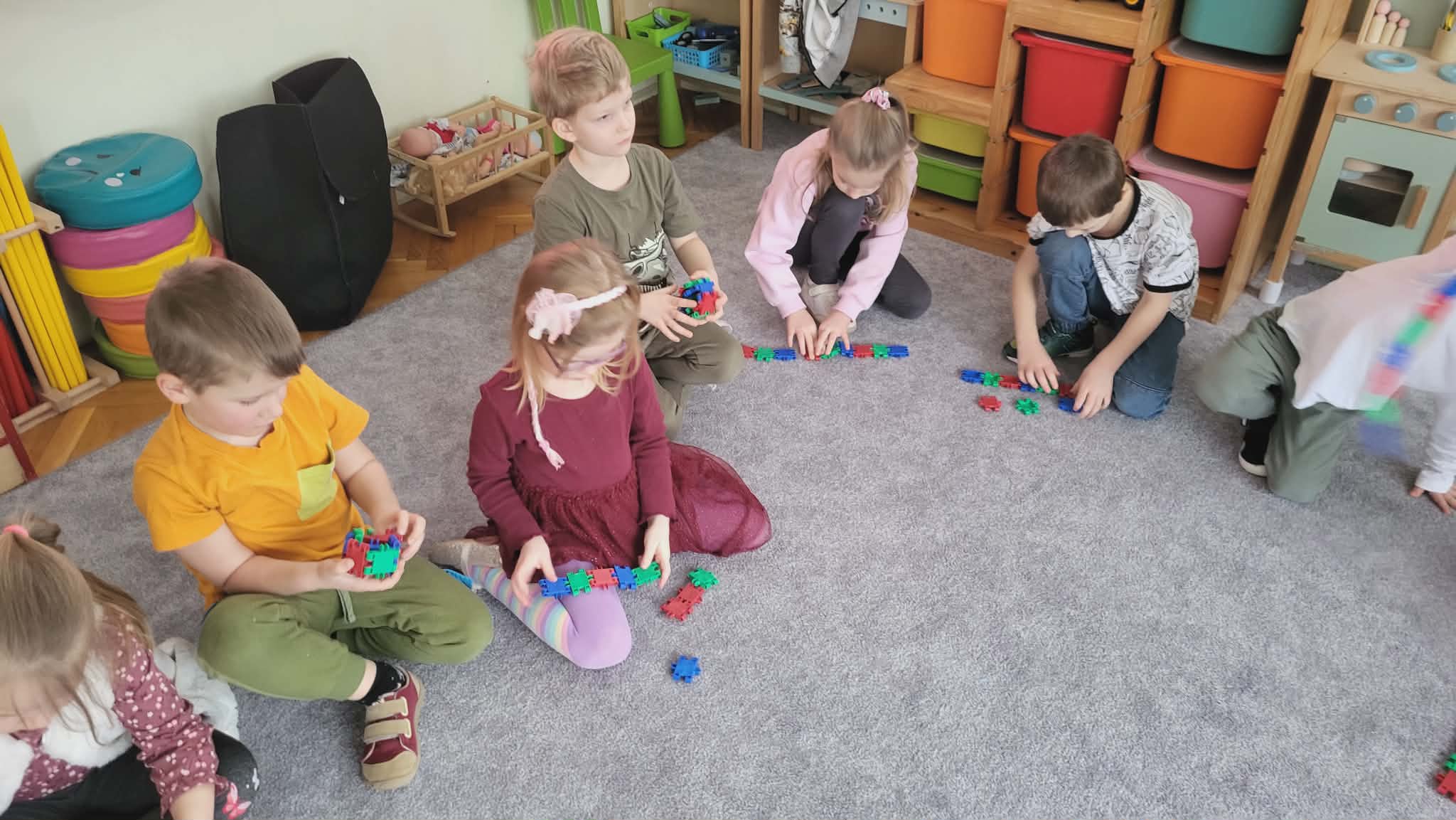 Zabawy matematyczno-ruchowe w przedszkolu łączą naukę liczenia, kształtów i rytmów z aktywnością fizyczną.