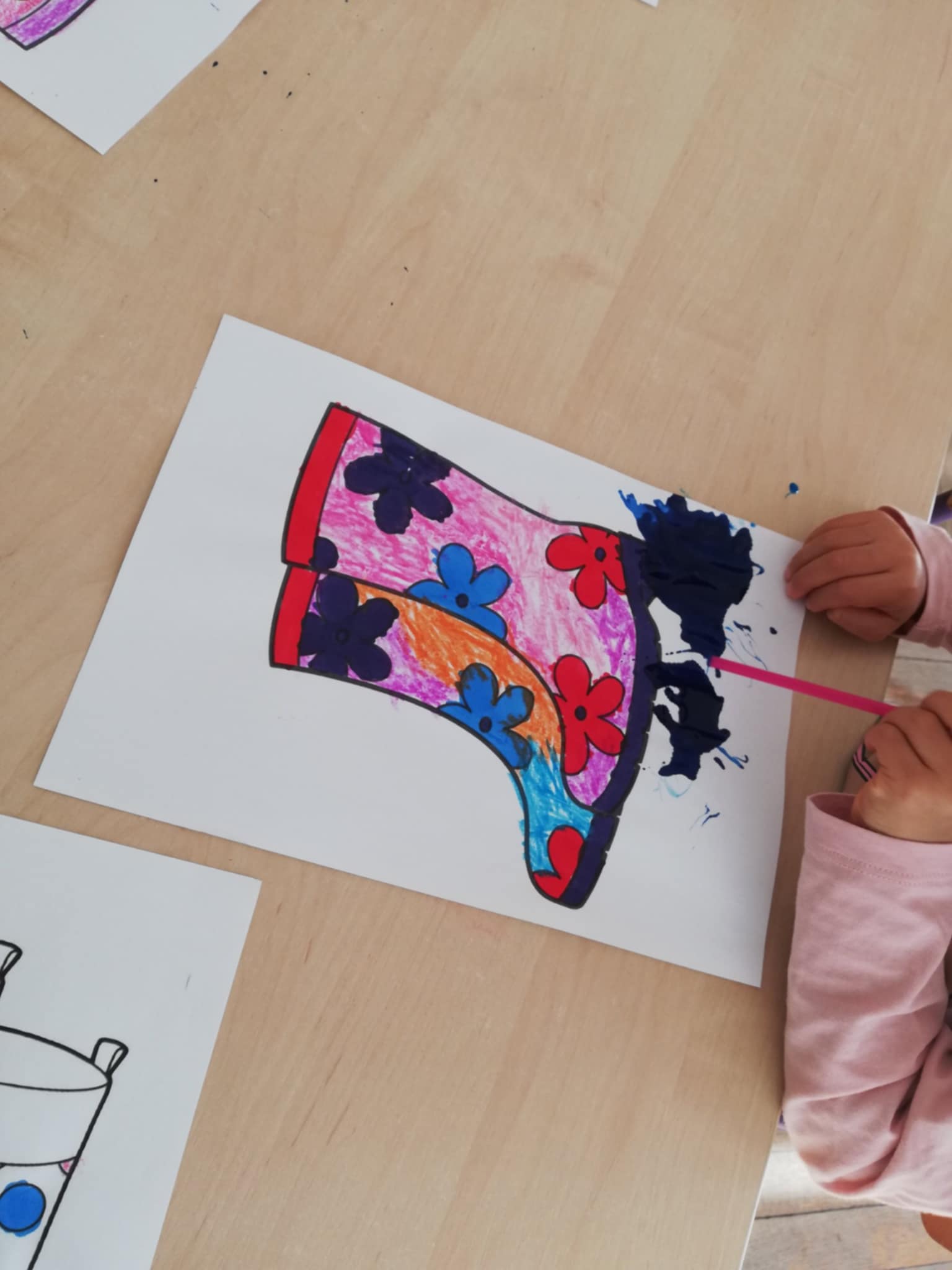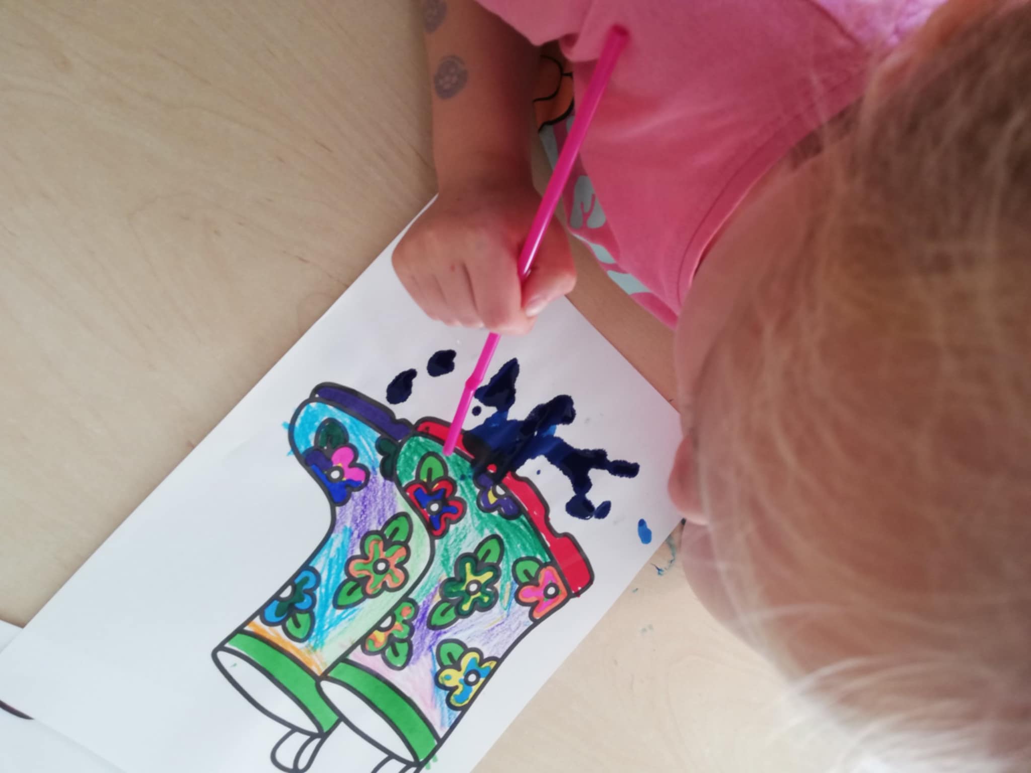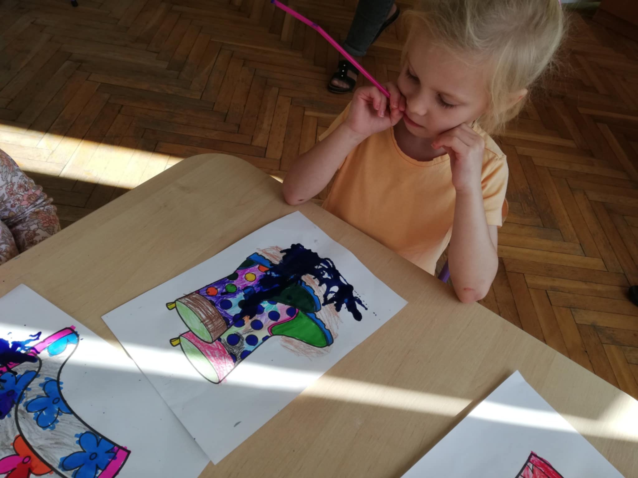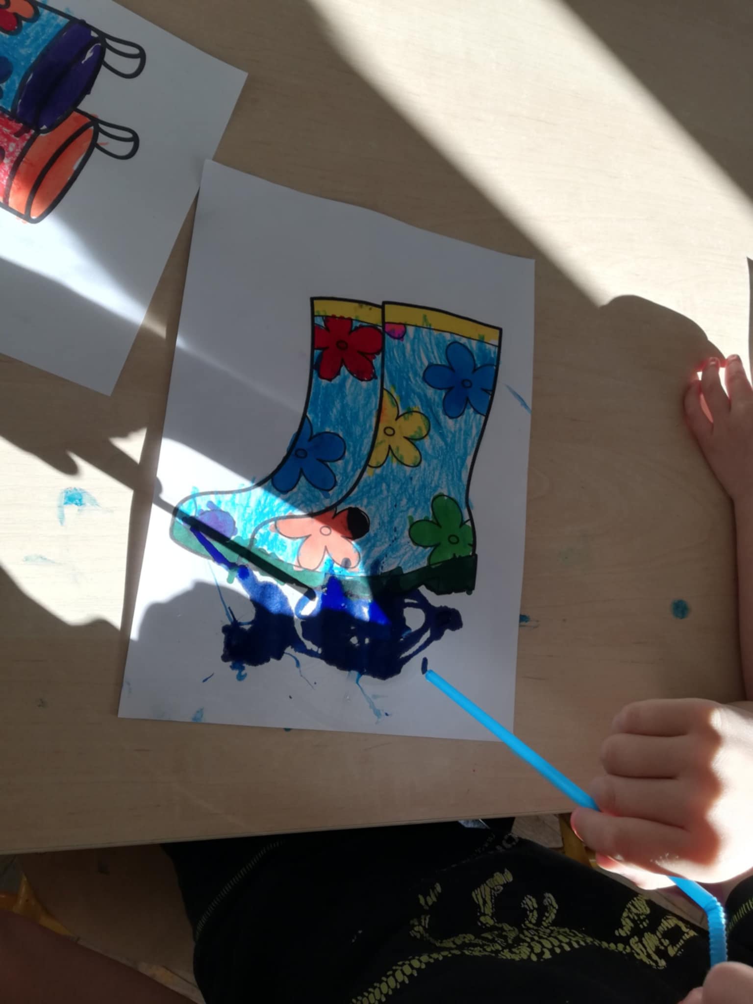 Kalosze pełne szczęścia. Dlaczego? Bo w kałuży! Ćwiczenia oddechowe z wykorzystaniem tuszu i słomki.