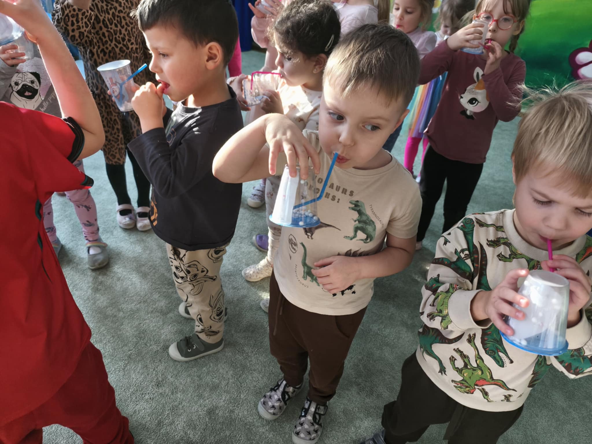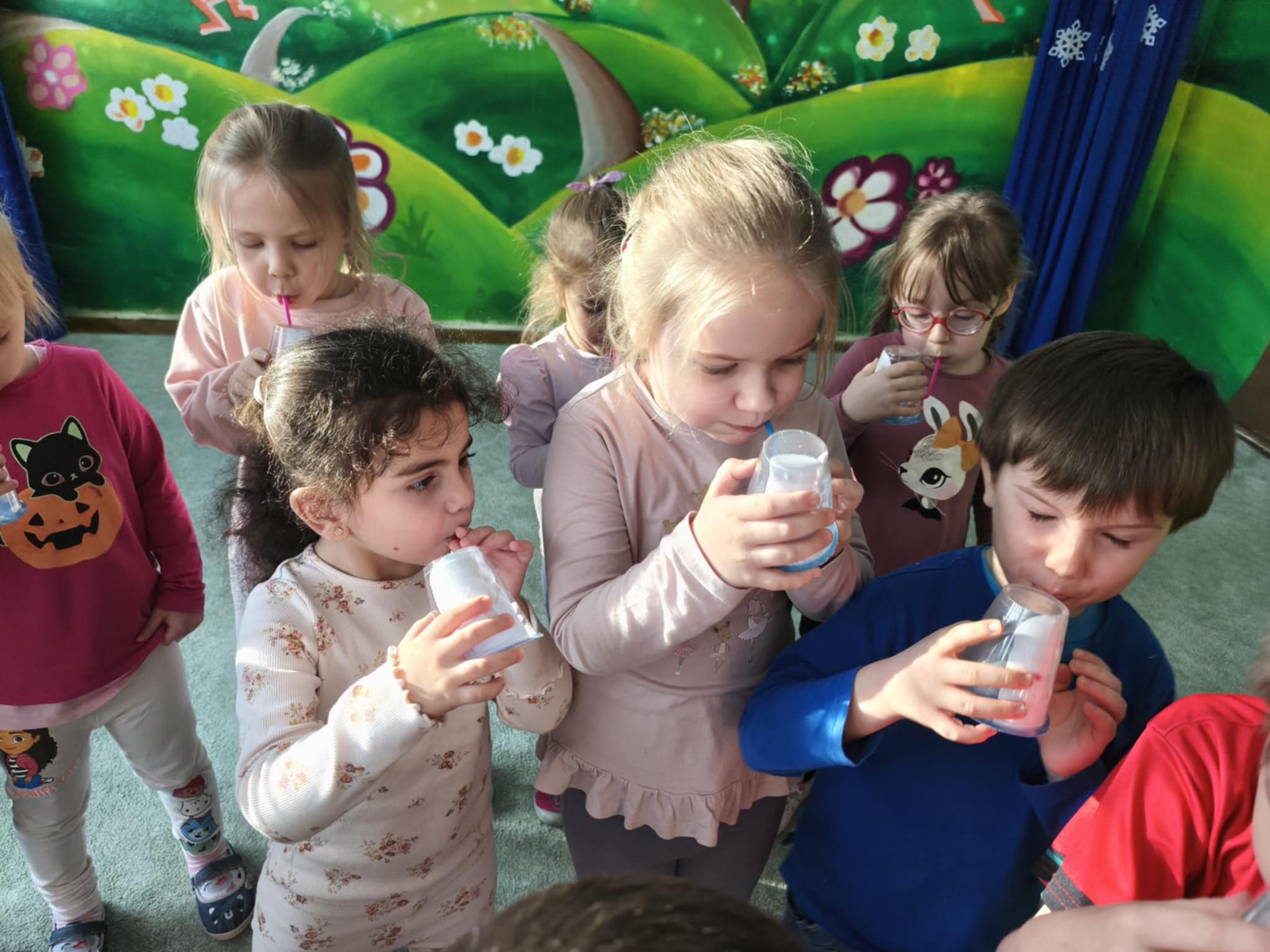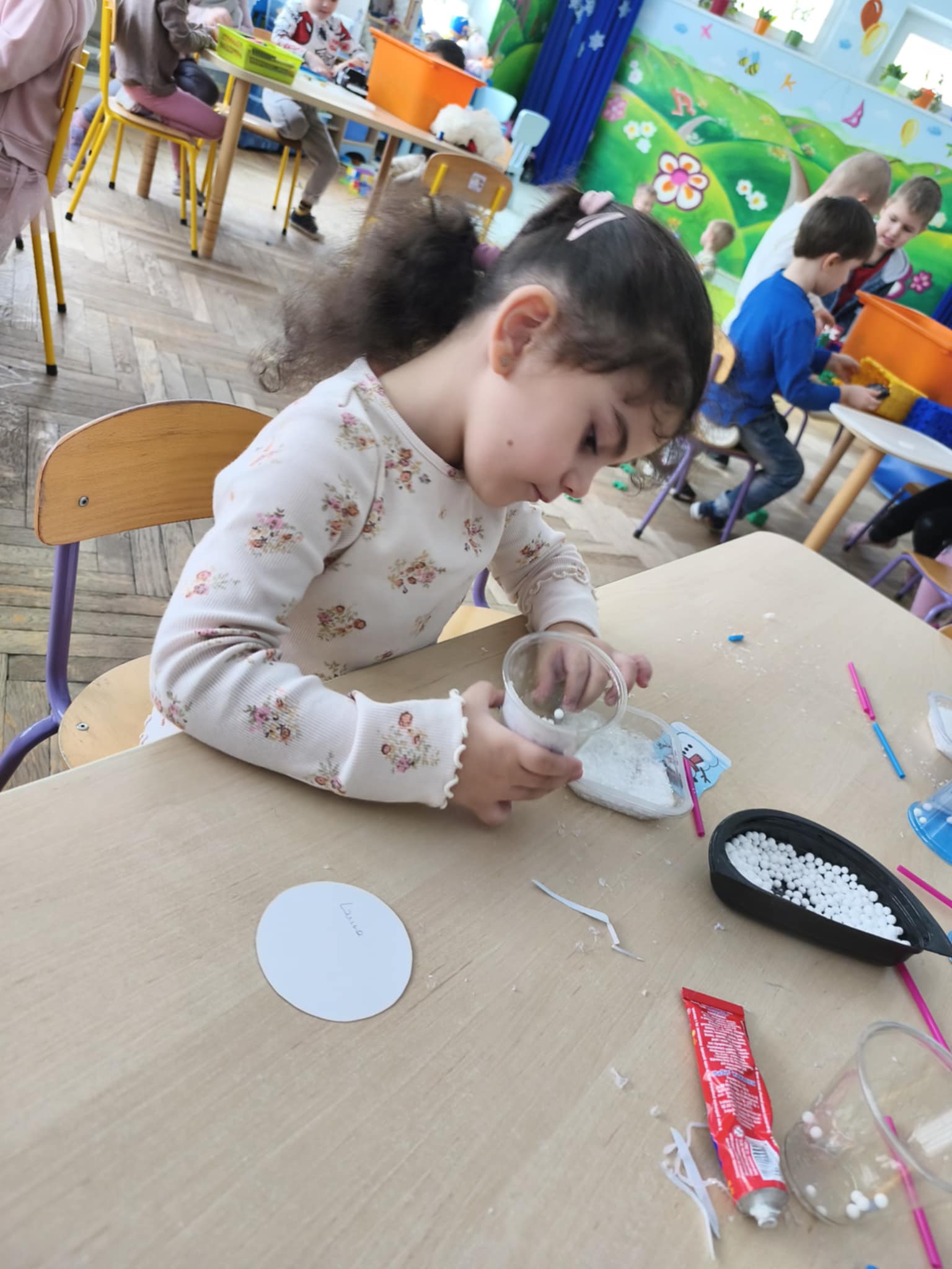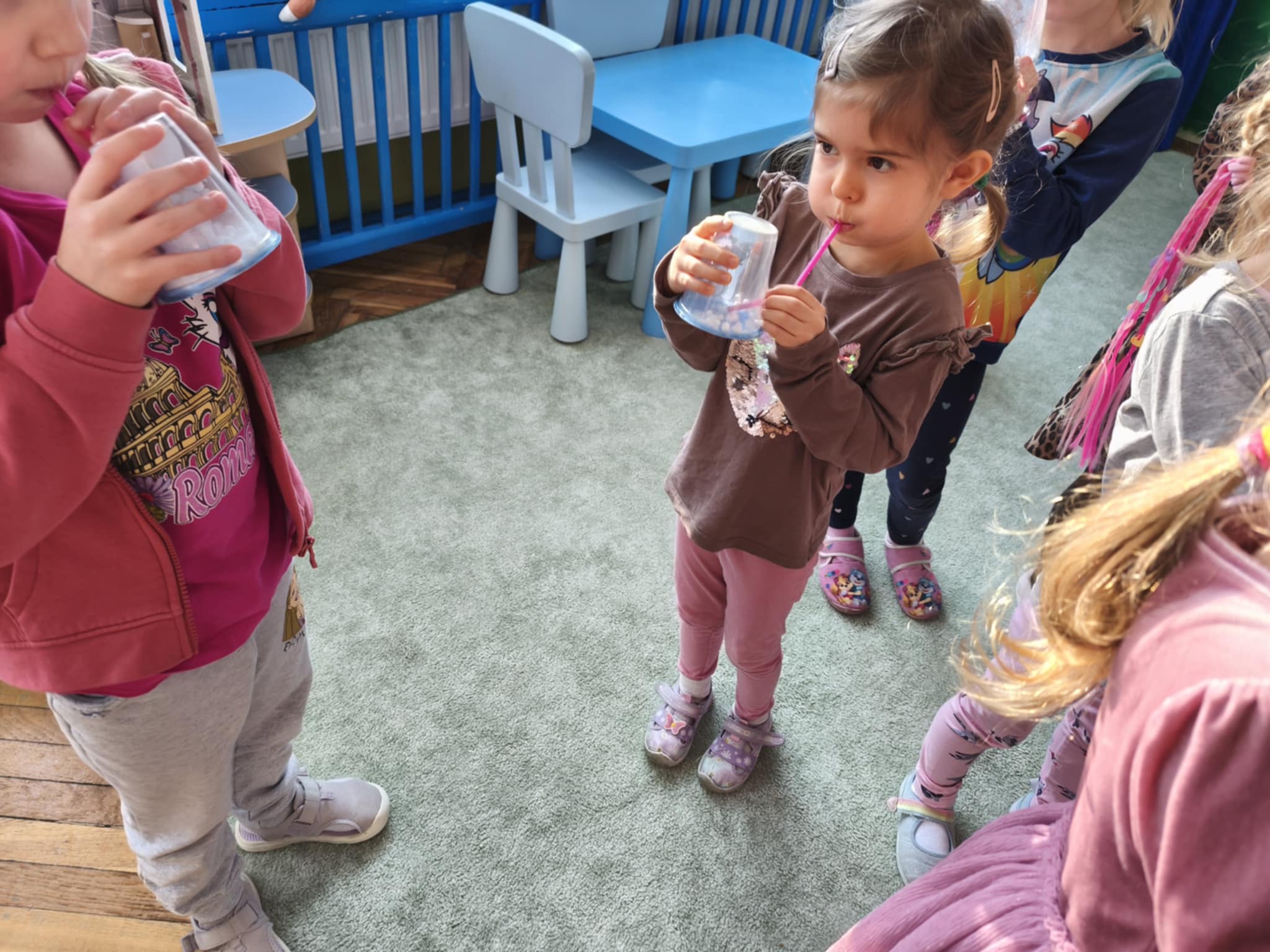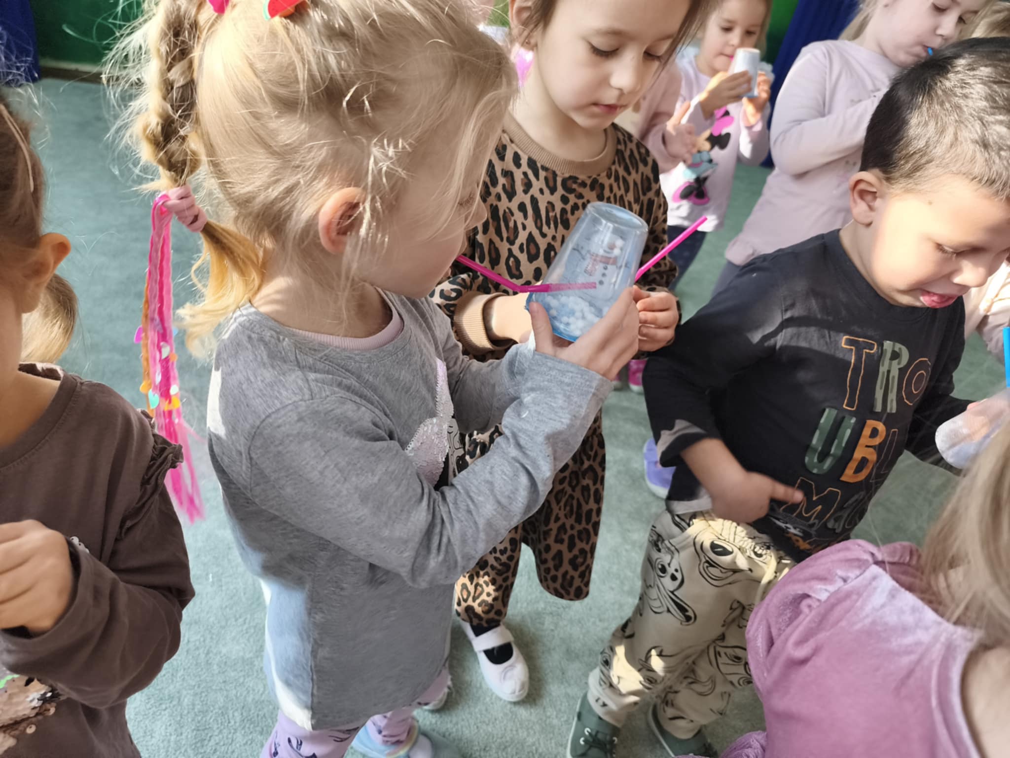 Ćwiczenia oddechowe pomagają nam wzmacniać aparat artykulacyjny i towarzyszą nam każdego dnia. Żeby je uatrakcyjnić, zrobiliśmy dzisiaj śnieżną pogodę w kubku. Abyśmy mogli zobaczyć wirujący "śnieg", musieliśmy mocno dmuchać przez słomkę, wprowadzając w ruch styropianowe kuleczki.